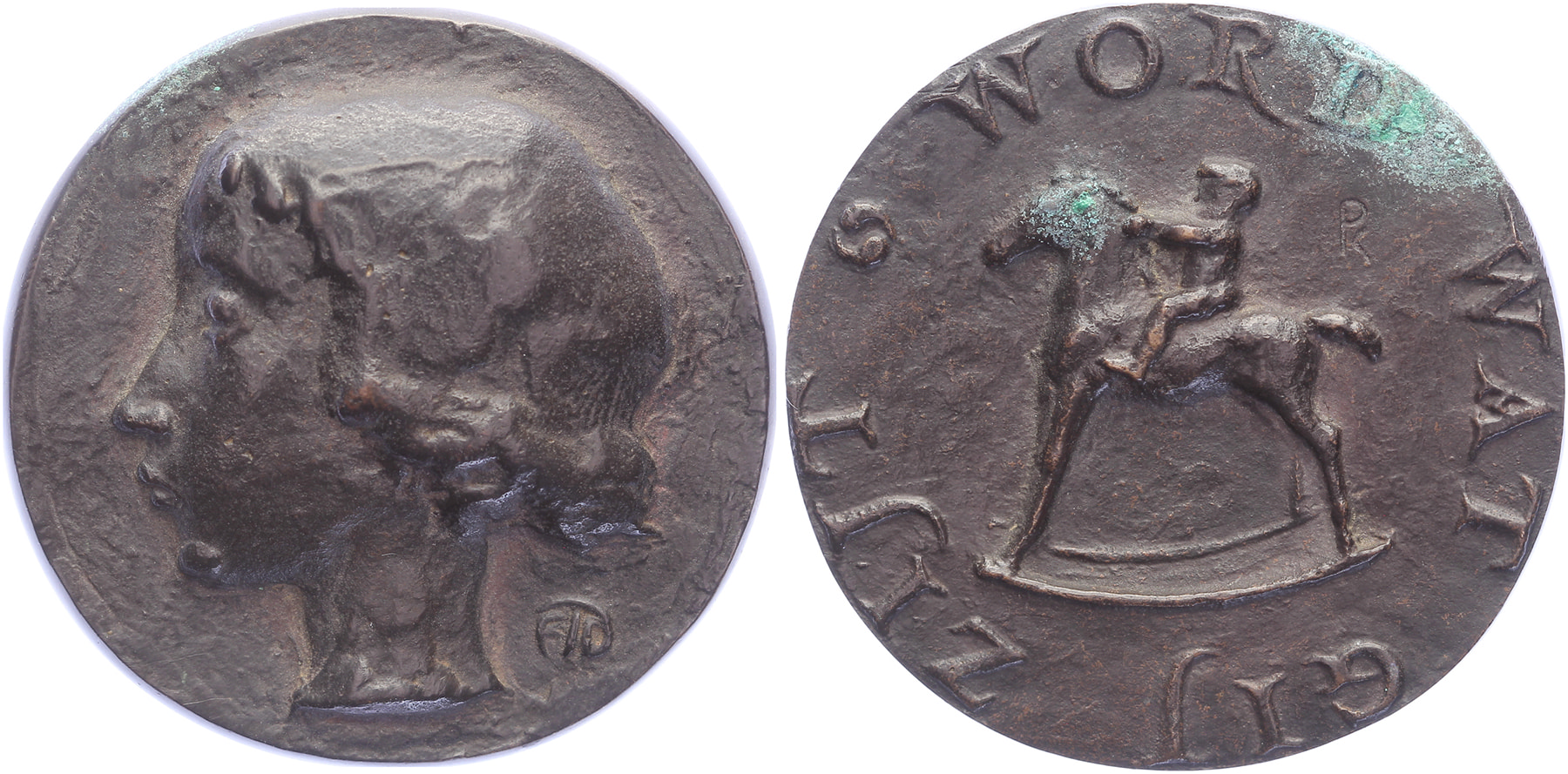 1970 Wordt wat gij zijt. Kinderhoofdje naar links. / Hobbelpaard.Æ gegoten 50. Tilanus p. 335-337. Floyd T. DeWitt. Groene aanslag kz. Prachtig.