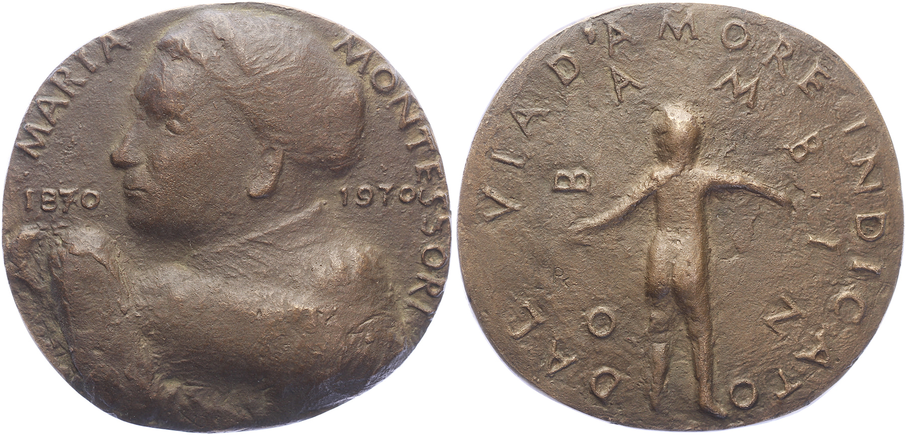 1972 Maria Montessori. Buste Maria naar links. / Jong kind, van achteren gezien.Æ gegoten 80. Tilanus p. 343-345. Nynke Jelles-Schepers. Prachtig.
