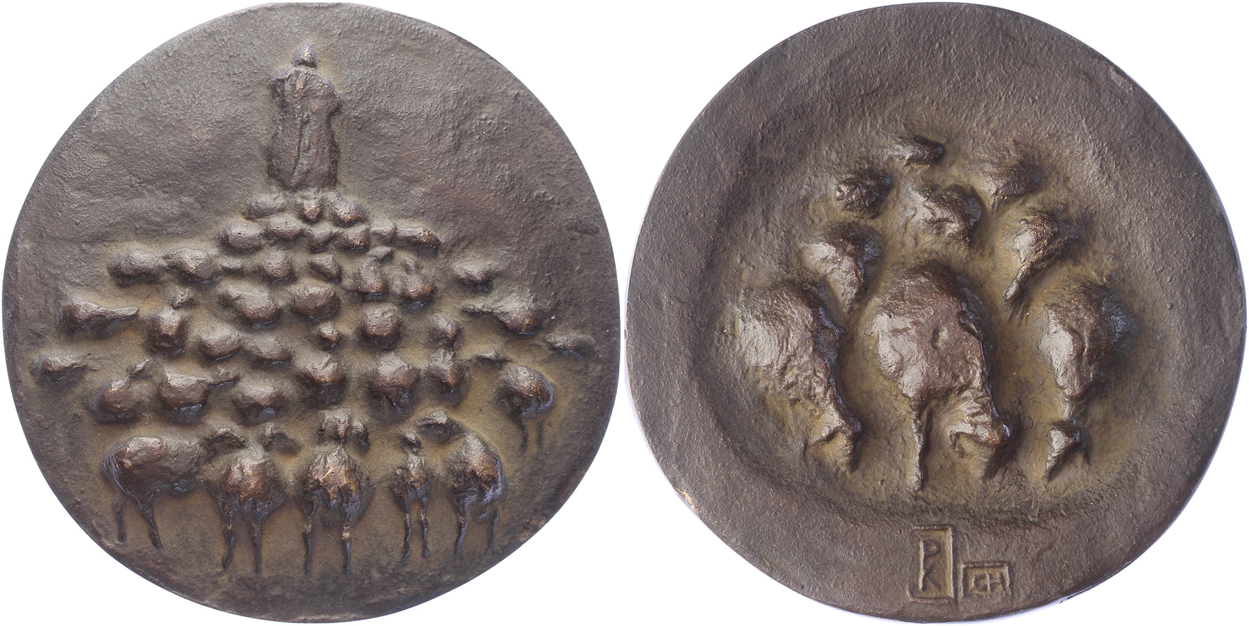 1972 Herder met schapen. Herder overziet zijn kudde. / Kudde schapen.Æ gegoten 63. Tilanus p. 347-349. Christl Seth-Höfner. Prachtig.