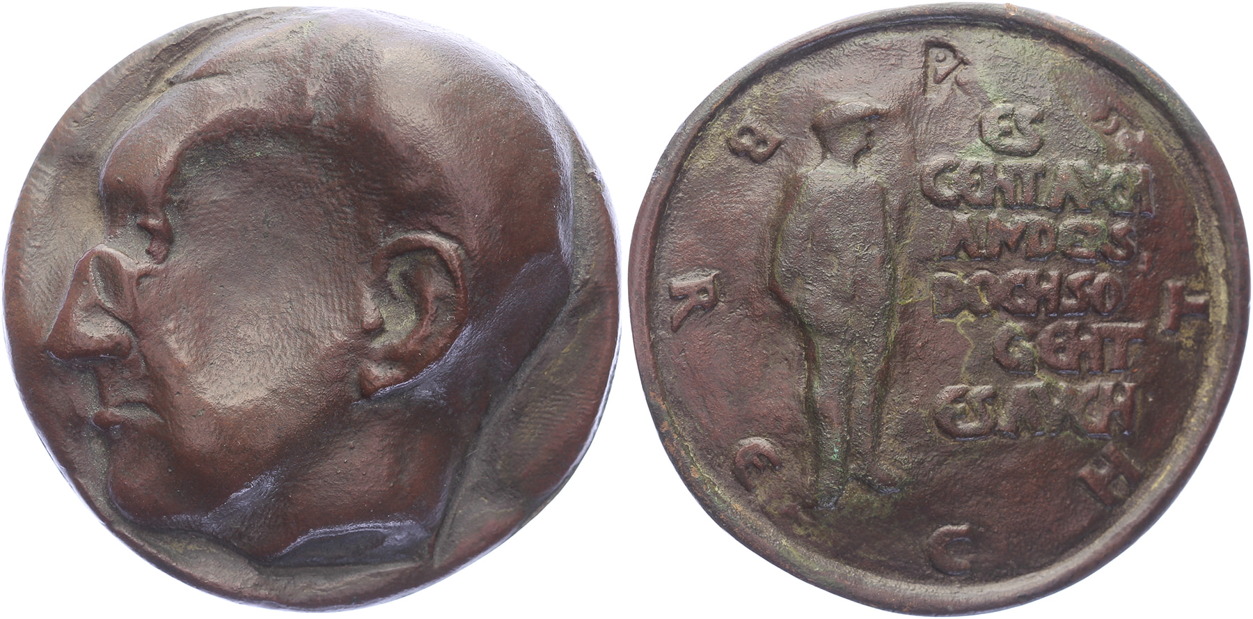1978 Bertolt Brecht. Portret naar links. / Tekst naast staande figuur.Æ gegoten 60. Tilanus p. 391-393. Geer Steyn. Prachtig.