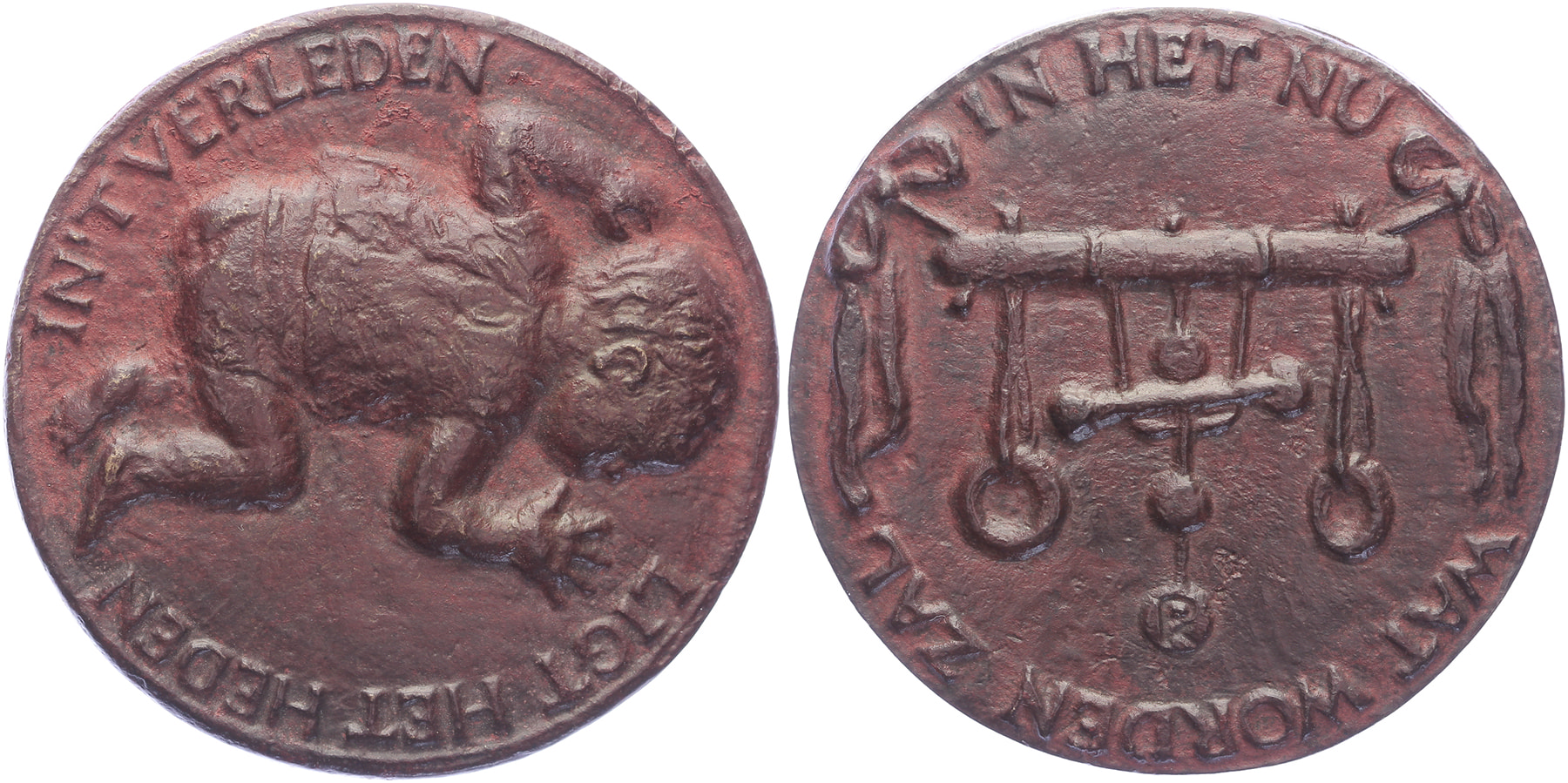 1981 Geboortepenning. Liggend kindje. / Kinderspeeltuigje.Æ gegoten 52. Tilanus p. 411-413. Jet Schepp. Prachtig.
