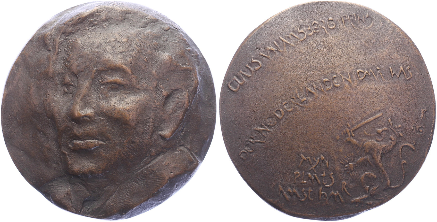 2003 Prins Claus. Hoofd Claus. / Tekst met Nederlandse leeuw met geheven zwaard en pijlenbundel. Æ gegoten 70. Elisabeth Varga. Prachtig.