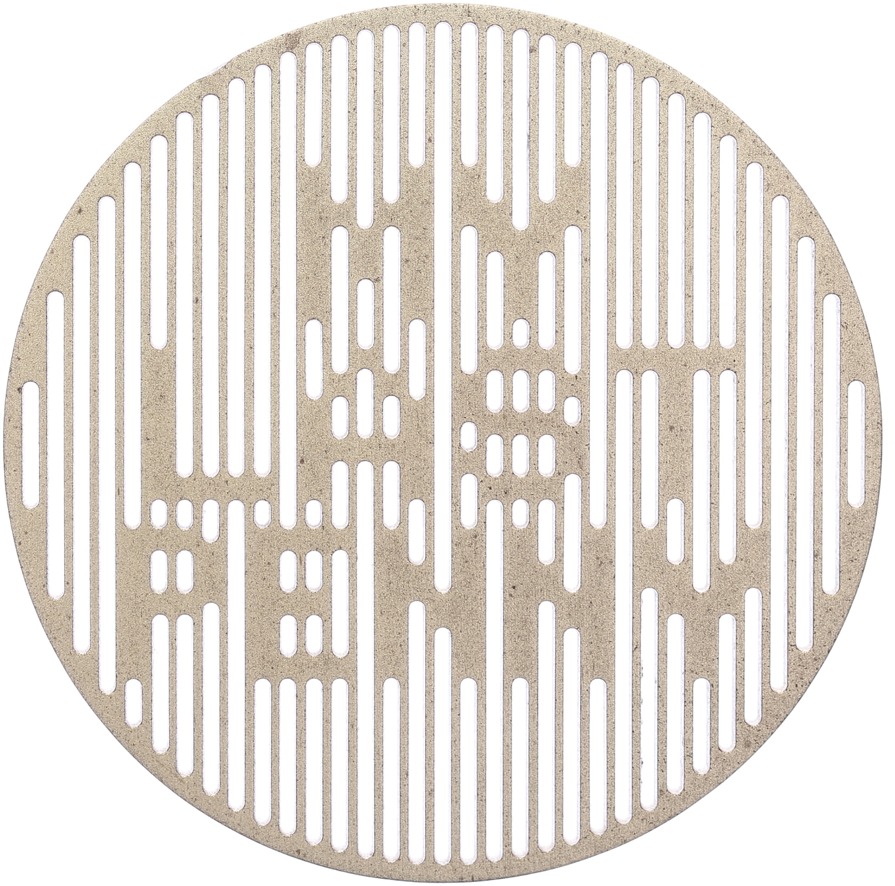 2010 My last penny. Drieregelig opschrift op geperforeerd messing 62 mm. Martijn Sandberg. Prachtig.
