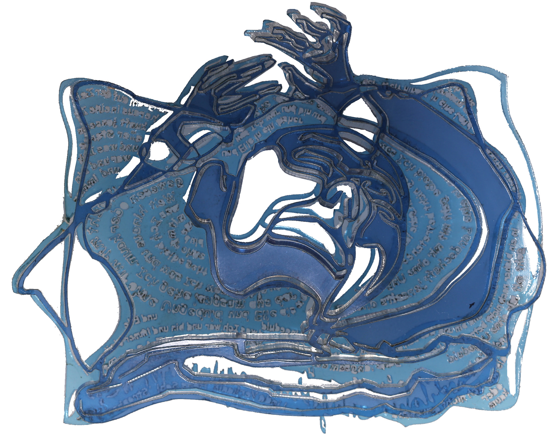 2019 Handen. Symbolische weergave bewegende handen.Transparant acrylaat 98 x 120. Linda Verkaaik. Prachtig.