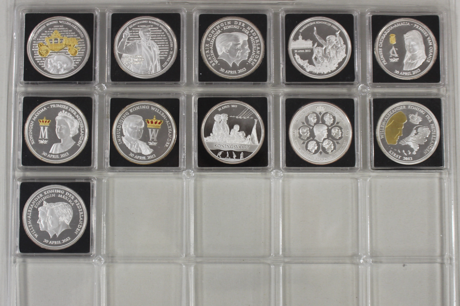 Multomap met 11 ‘zwaar’ verzilverde penningen betr. het Oranjehuis. De info is indrukwekkend!