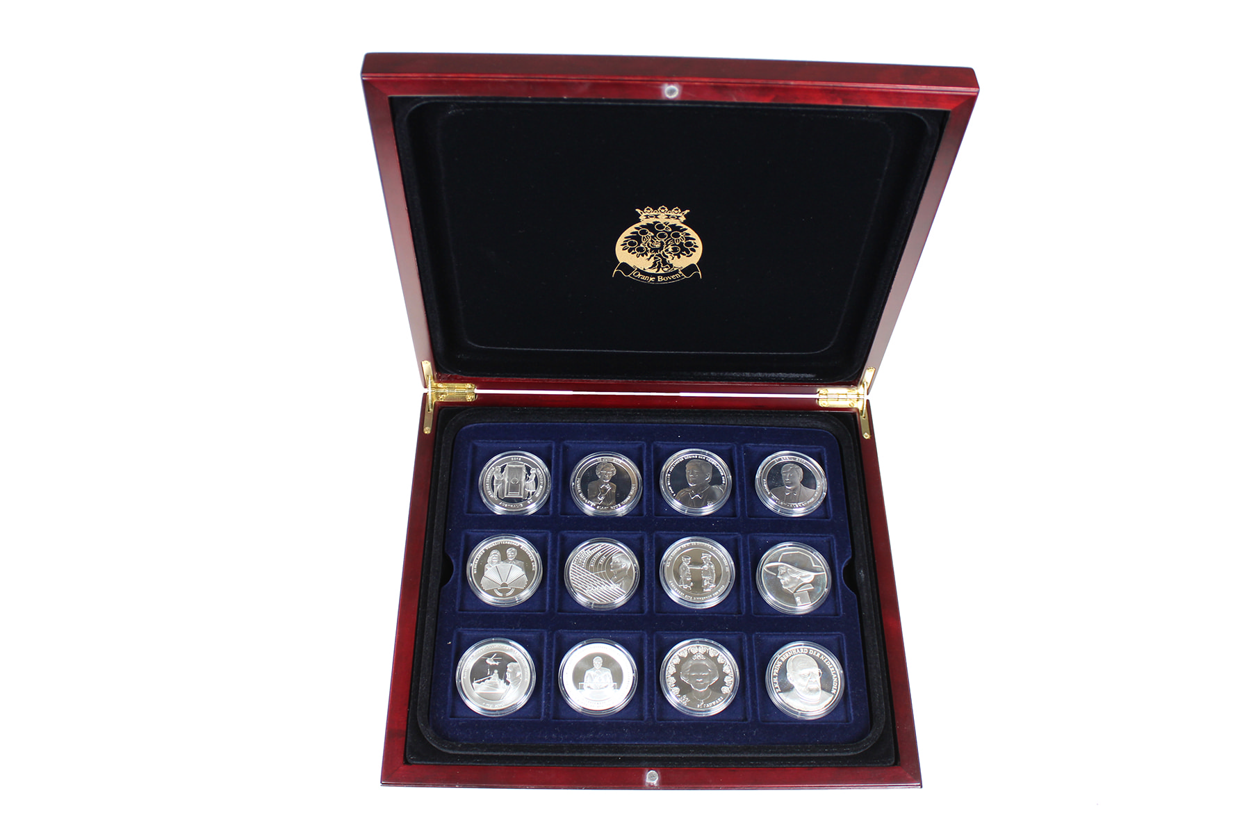 Kist met 12 sterling zilveren penningen, leve Oranje! Staatsbezoek Australië en Nieuw-Zeeland 2016. Ruim 370 gram bruto AR.