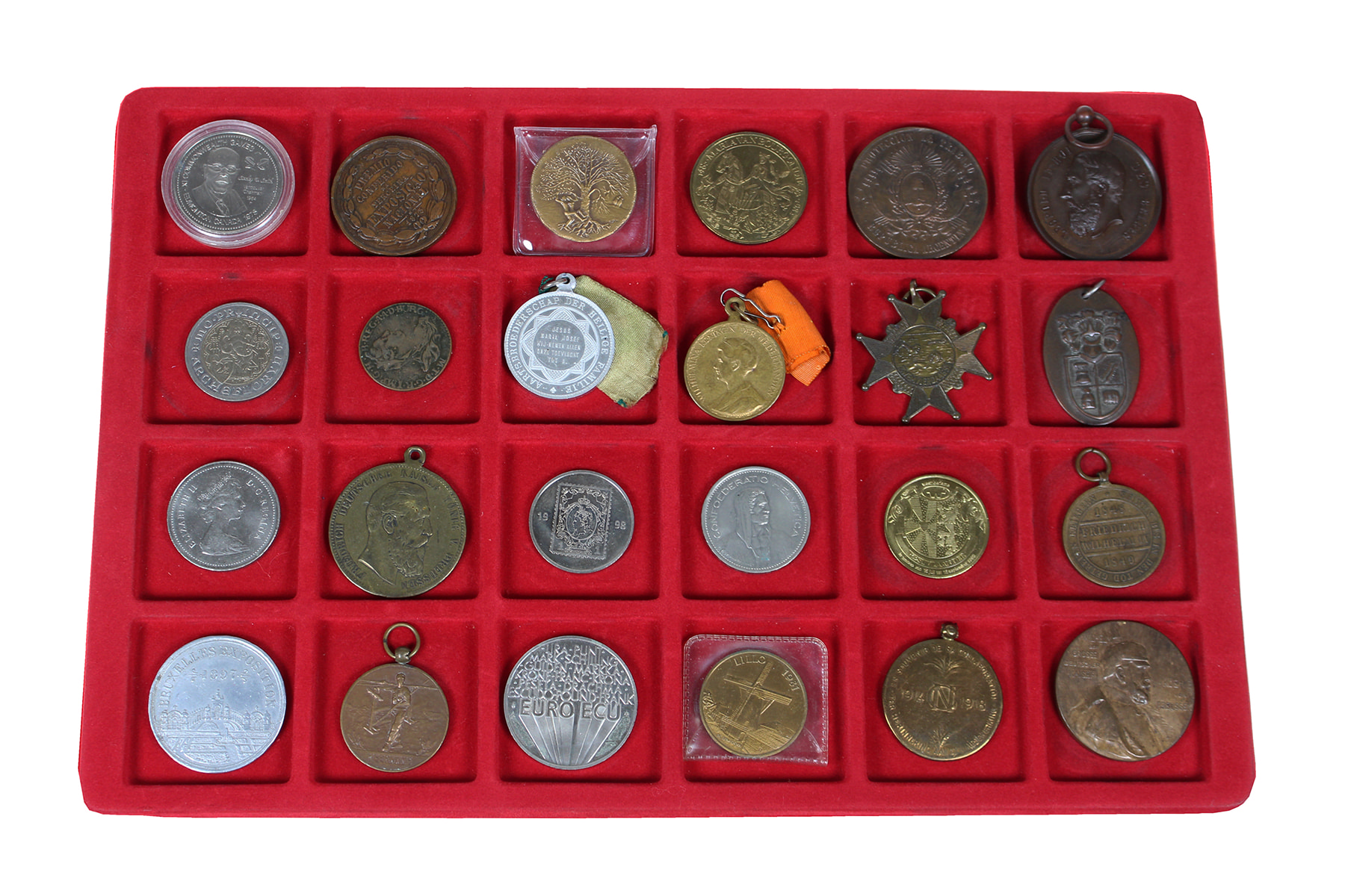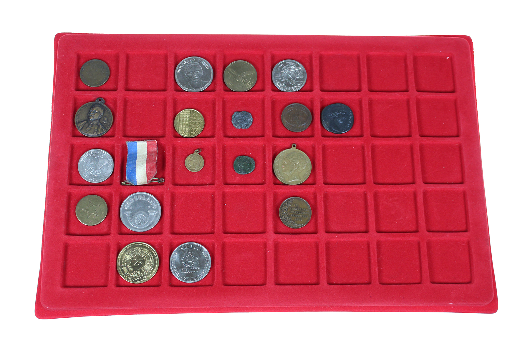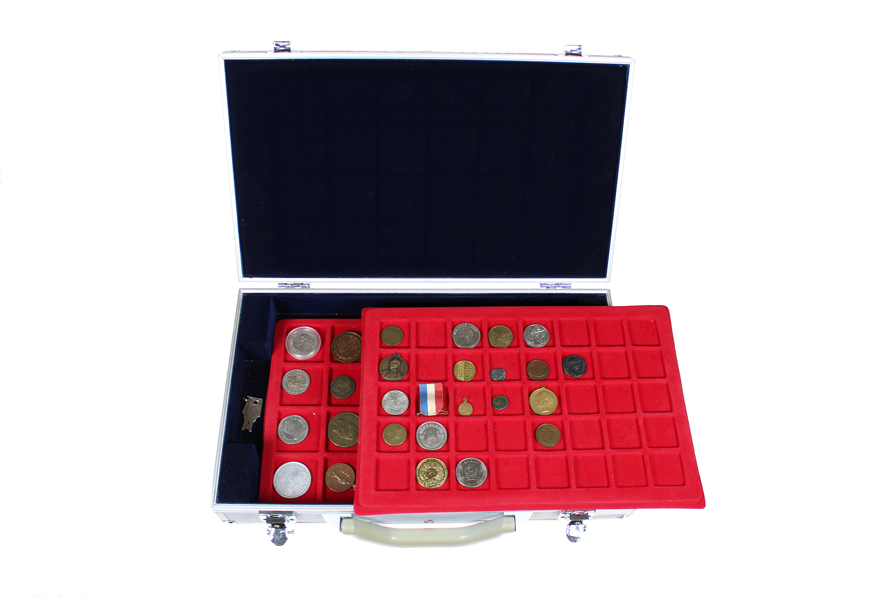 Zilverkleurig koffertje (47) diverse Nederlandse- en buitenlandse penningen.