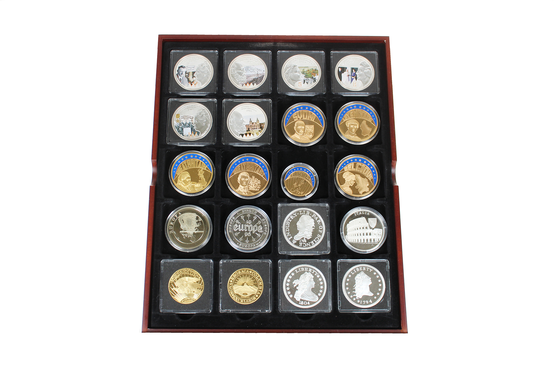Voor de ultieme bling bling liefhebber! Maar liefst 19 luxe kisten met ruim 370 originele, deels met massief gouden en zilveren vergulding toegepast op 24 karaat koper! Werkelijk te mooi om waar te zijn! Dit is echter nog niet alles, u krijgt er 2 verhuisdozen met originele certificaten bij, dit is ook tevens het enige wat echt is! Uitgifteprijs €10.000 +++.