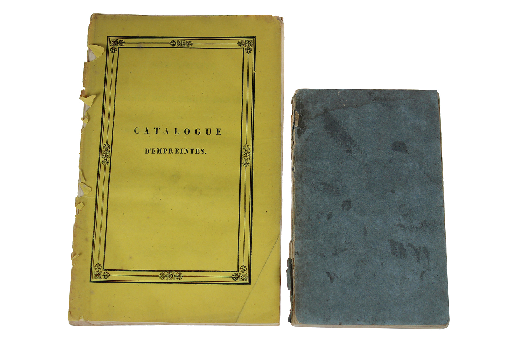 Lot (2) De Jonge, J.C. Notice sur le Cabinet des Medailles et des Pierres gravées de sa Majesté Le Roi des Paijs-Bas, Den Haag, 1823, 180 bladzijden. 10 x 16 ½ cm. Catalogue démpreintes du Cabinet de Sa Masjesté le Roi des Pays-Bas, Den Haag 1837, 76 bladzijden, 14 ½ x 22 ½ cm, losliggende bladen.