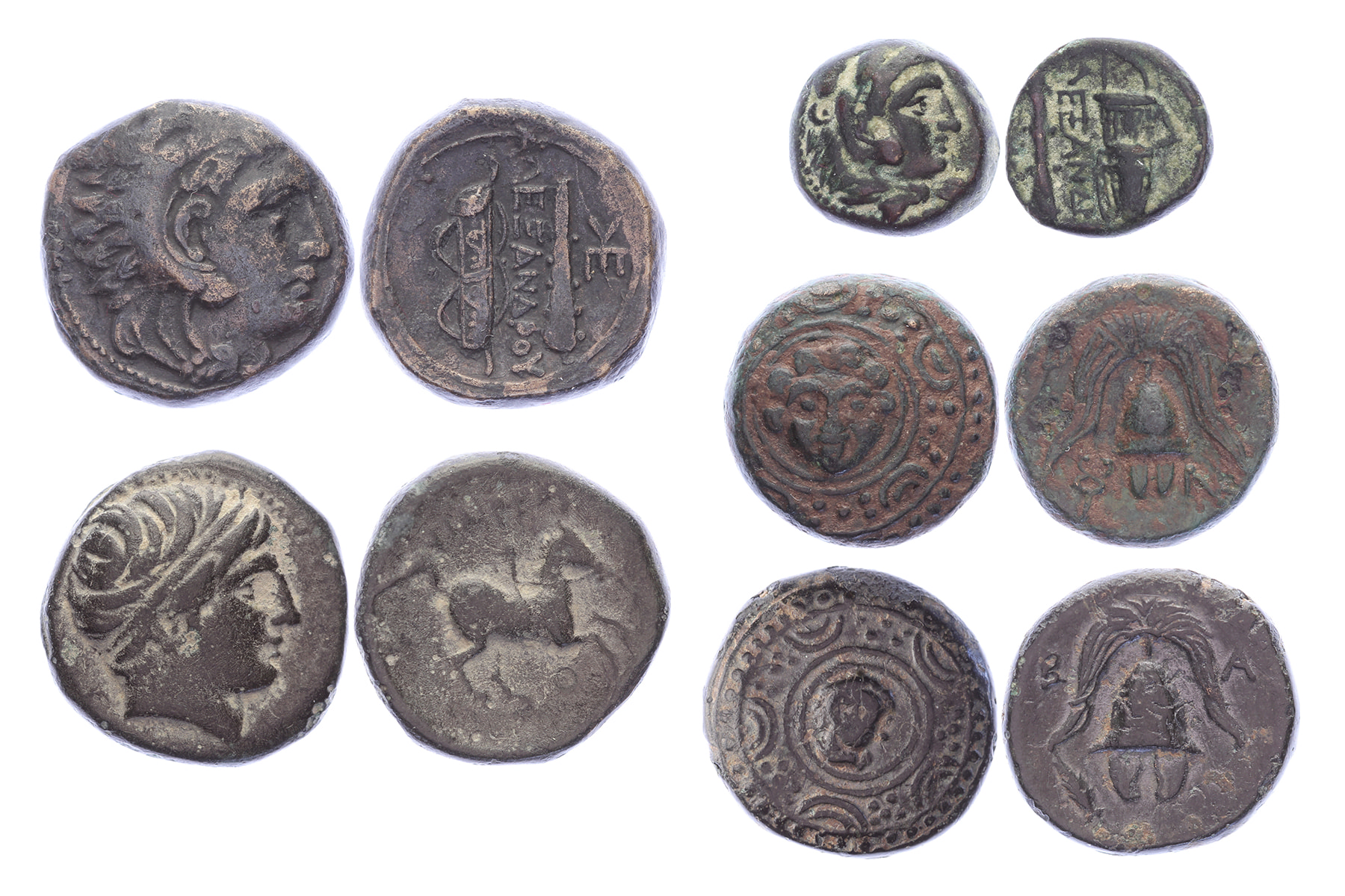Lot (5) Æ [6,94 gm, 17,3 mm] Uncertain mint in Macedon; Æ ¼ Unit Æ [1,67 gm, 11,5 mm]; Æ [4,24 gm, 14,8 mm]. Salamis mint; Æ [4,24 gm, 14,8 mm]. Salamis mint; Æ [4,16 gm, 15,9 mm]. Uncertain mint in Western Asia Minor. Added: Philip II. 359-336 BC. Æ [5,51 gm, 17,2 mm]. Uncertain Macedonian mint.Uitgebreide beschrijving van de munten bij lot ingesloten. / Comprehensive description accompanies this lot.