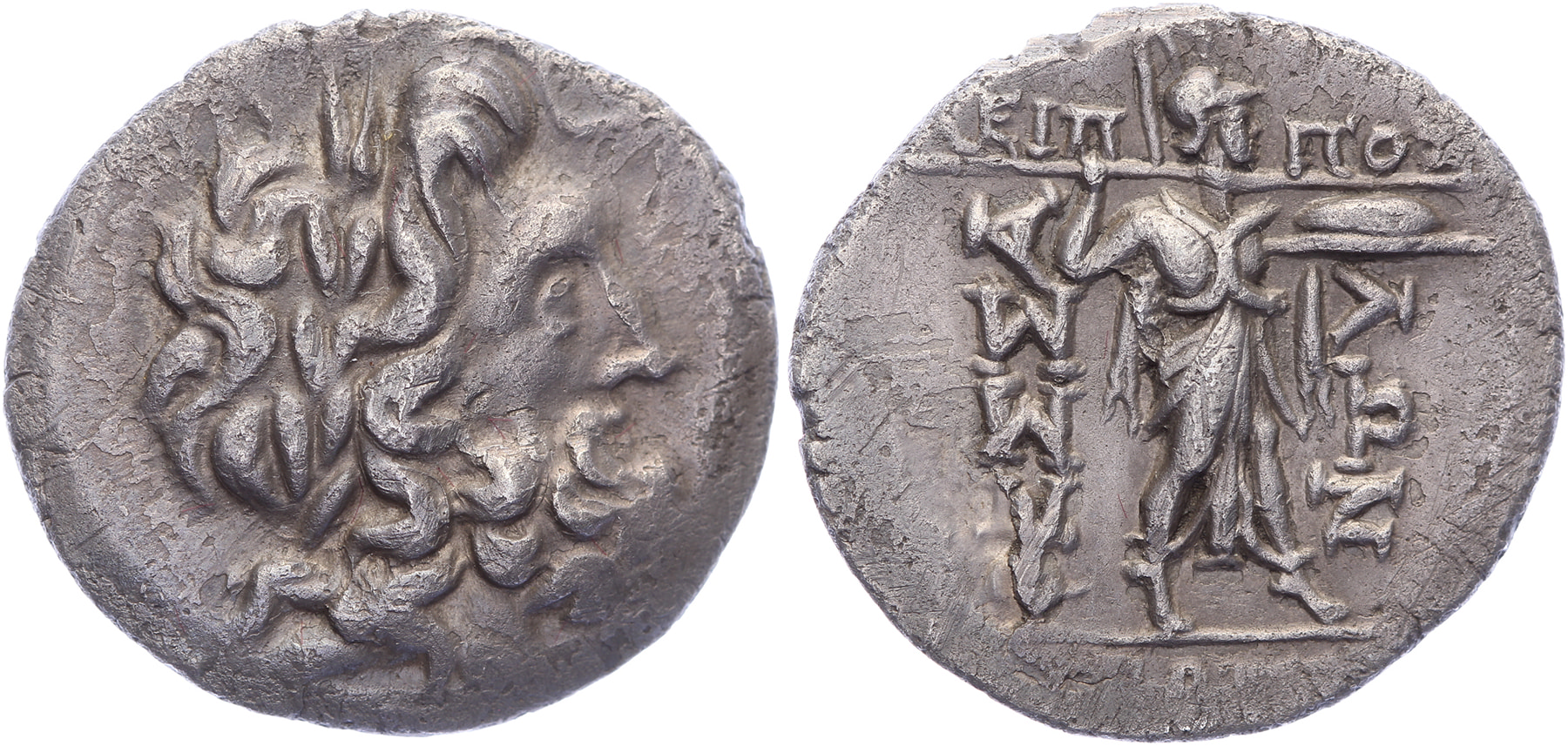 Late 2nd-mid 1st centuries BC. AR Stater [5,70 gm, 22,9 mm]. Kleippos and Gorgopas, magistrates. Laureate head of Zeus right / ΘΕΣΣΑ/ΛΩΝ, Athena Itonia advancing right, holding shield and preparing to hurl spear; [K]ΛEIΠ-ΠOΣ above; [ΓOP]ΓΩ[ΠAΣ] in exergue. BCD Thessaly II 863.1; HGC 4, 209. Minor roughness, VF.Purchased from Gert Boersema, November 2018 (Tienen coin fair). Ex BCD collection