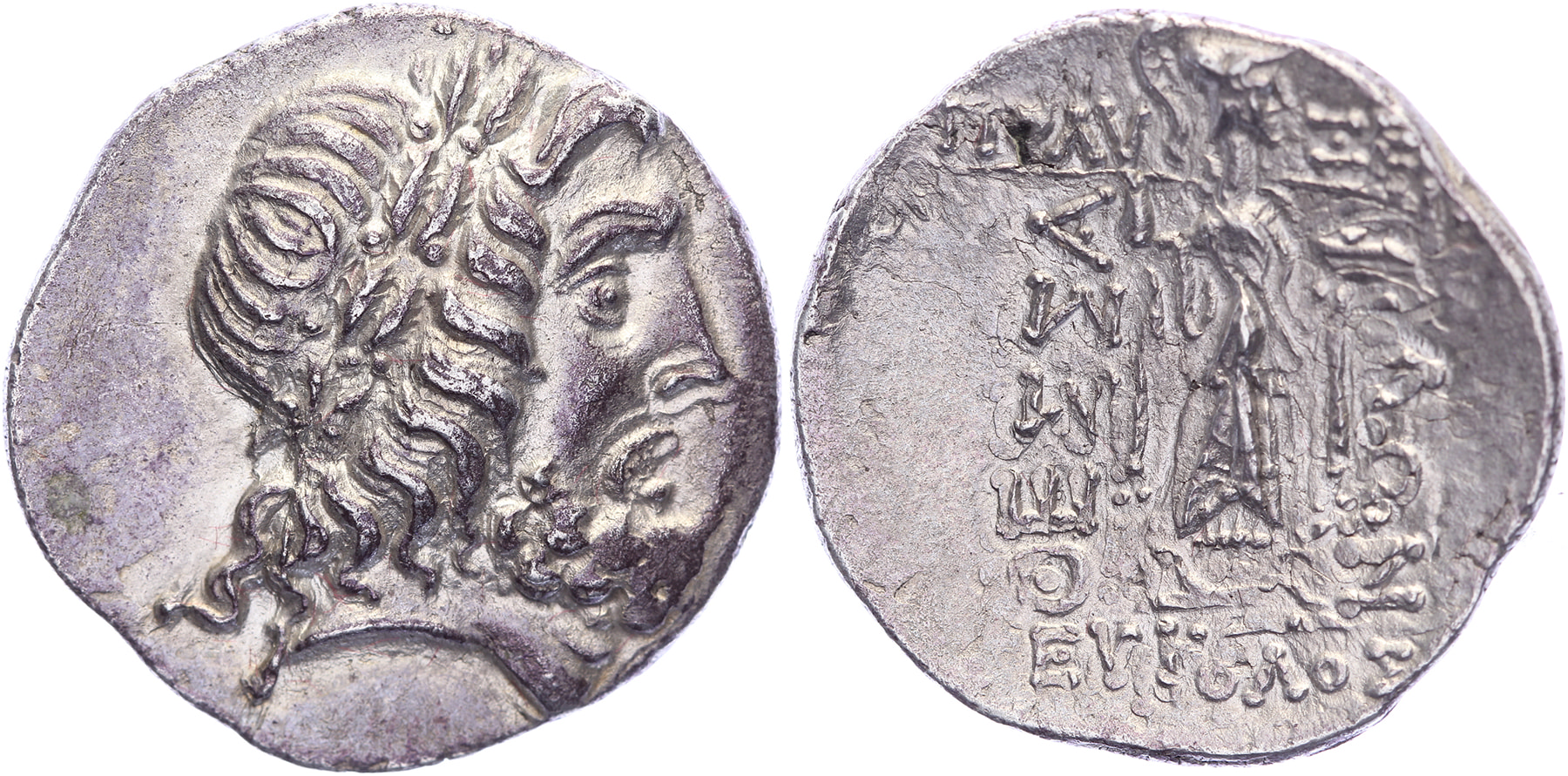 Mid – late 1st century BC. AR Stater [6,25 gm, 22,4 mm]. Damothoin(os) and Philox(enides), magistrates. Head of Zeus right, wearing oak wreath / ΘEΣΣA/ΛΩN, Athena Itonia striding right, hurling spear held in her right hand, shield on her left arm; ΠΟΛYΞENOY above spear with last letter below, EYKOΛOY below. Reverse slight die shift. gVF.Purchased from Gijs Henzen, December 1995 (Berkel Enschot coin fair)