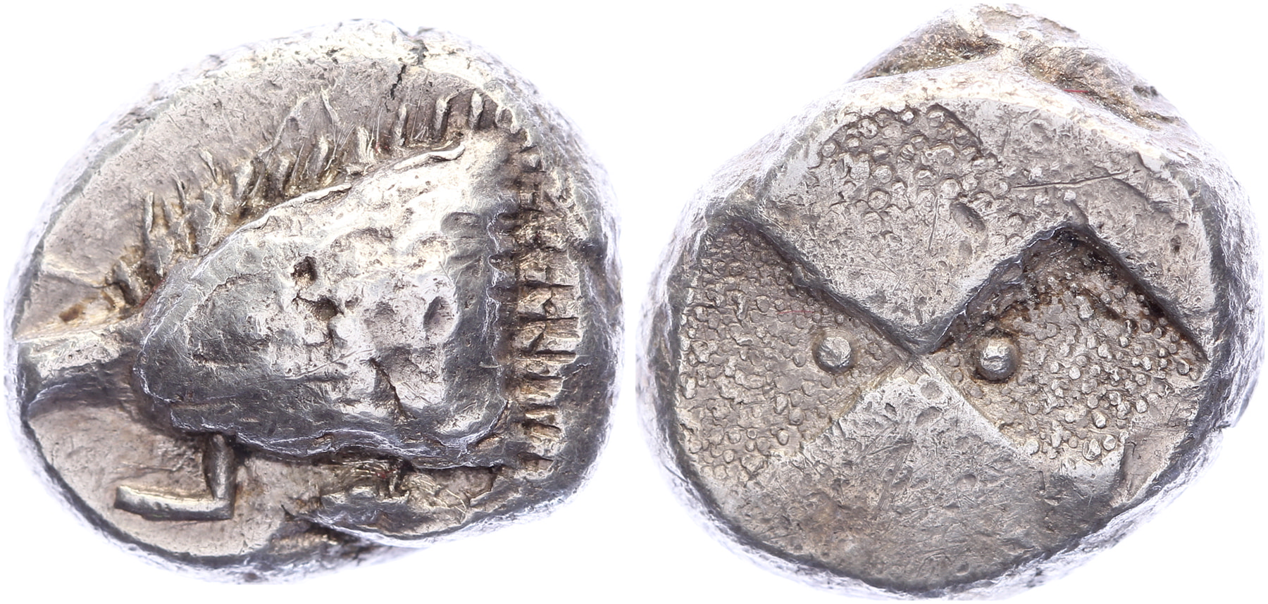 Circa 490-425 BC. AR Drachm [6,09 gm, 15,7 mm]. Head of sea eagle left, small dolphin below / Double incuse punch with pellets at center. SNG BM Black Sea-1361; Kraay, NC 1981, pl. 2, 31. Nice VF.
