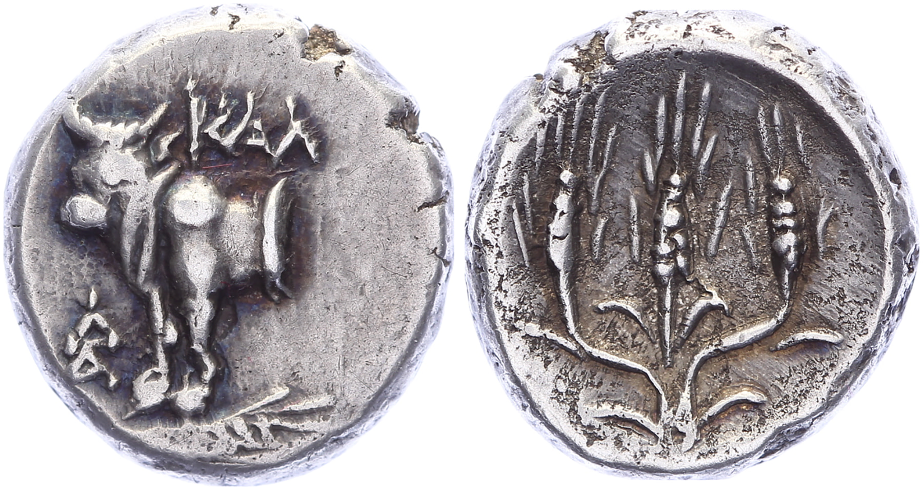 Circa 366-340 BC. AR Hemidrachm [1,89 gm, 10,9 mm]. Forepart of a bull left, KAΛ above; monogram before / Three grain ears. SNG BM Black Sea 110; HGC 7, 514. Minor reverse roughness, gVF.Purchased from G. Henzen, February 2002