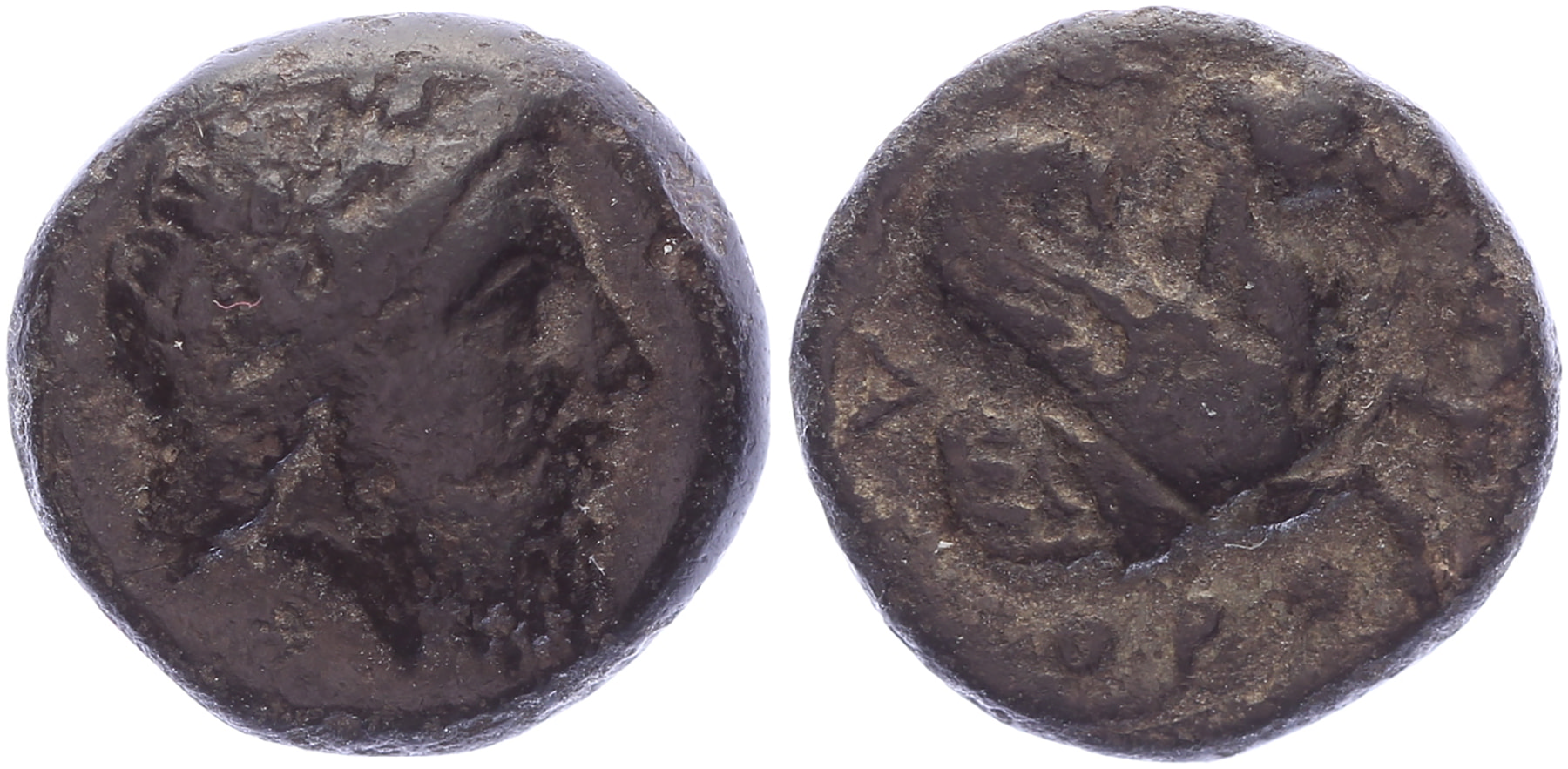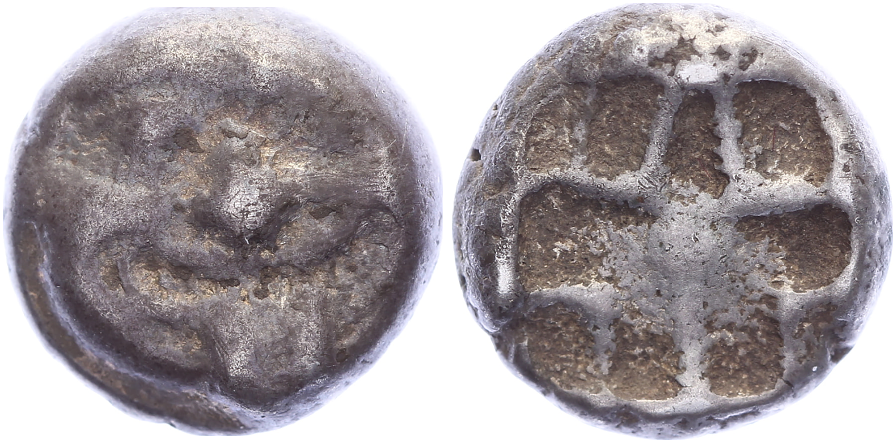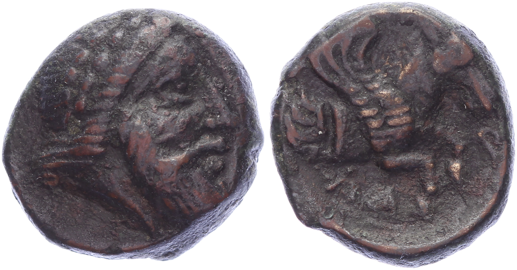 Lot (3) Circa 362 B.C. Æ [1,52 gm, 11,8 mm]. Orontas, Satrap. Laureate head of Zeus right / Λ-A-M, OPON[TA], forepart of pegasus right. SNG France 1163; SNG Copenhagen 199; SNG von Aulock 1821. aVF; 3rd-2nd centery BC. Æ [1,65 gm, 12,1 mm]. Laureate head of Priapos right / ΛΑ−Μ, forepart of Pegasos right. Sear 3899. Scarser type. VF; 5th century BC. AR Drachm  [2,70 gm, 12,2 mm]. Facing Gorgoneion / Linear pattern in incuse square. SNG BN 1343-52; SNG Copenhagen 256. F.