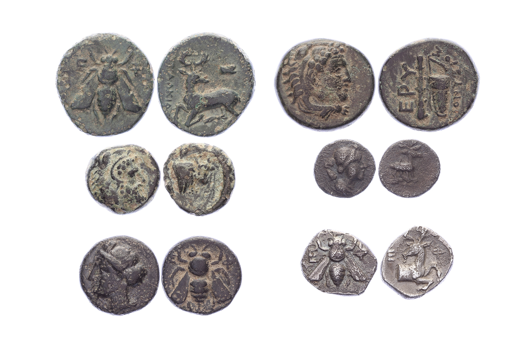 Lot (6) Ionia - Ephesos en Erythrai. Diverse Æ en AR Obol afkomstig uit verschillende eeuwen. Uitgebreide beschrijving van de munten bij lot ingesloten. / Comprehensive description accompanies this lot.