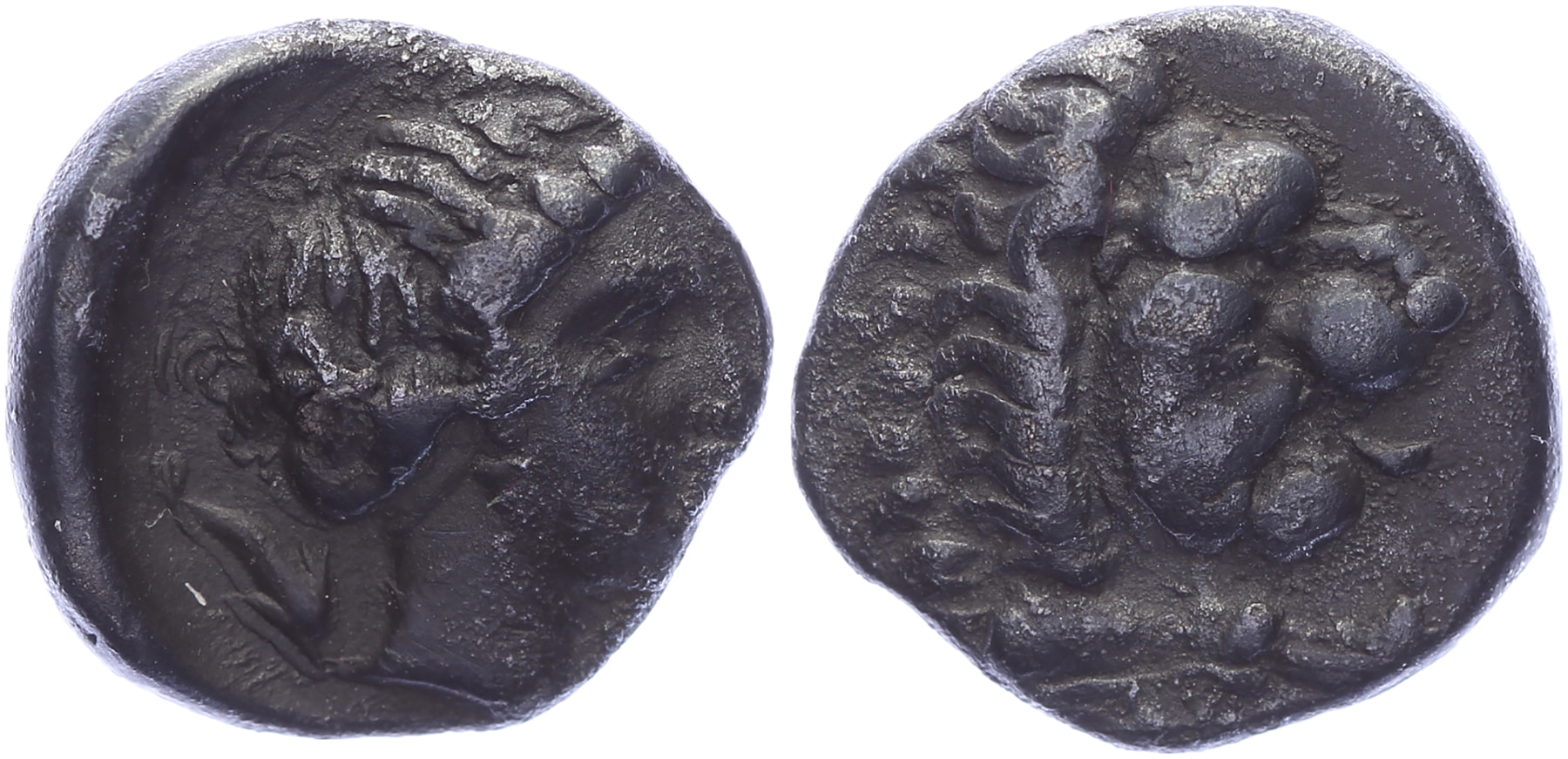 4th century BC. AR Hemidrachm [1,78 gm, 12,2 mm]. Head of Aphrodite right, hair gathered in sphendone, dolphin below / Forepart of lion right. Karl Coll. -: SNG Helsinki -; SNG Kayan 823 var (dolphin). Unpublished variant with dolphin. Obverse slight die shift & off centre, dark toning, VF.Purchased from Tom Vossen, April 2004