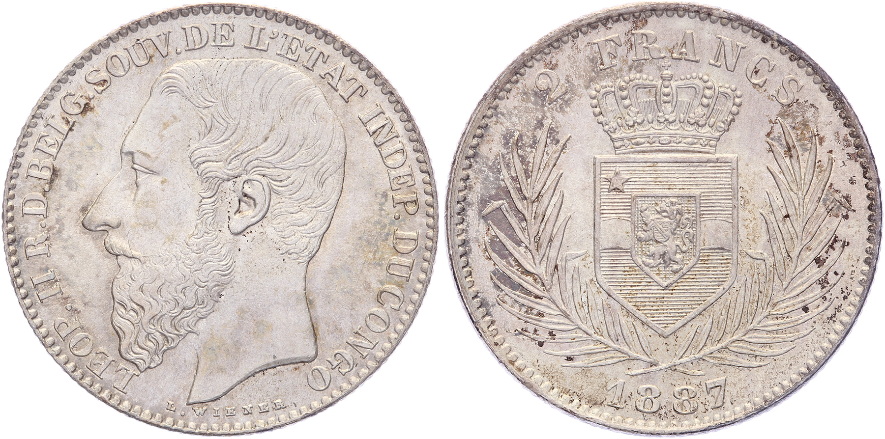 2 Francs 1887. KM 7. Nice colour. Unc.