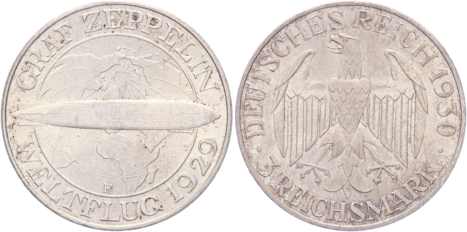 3 Reichsmark 1930F Zeppelin. Jaeger 342; KM 67. Vorzüglich.