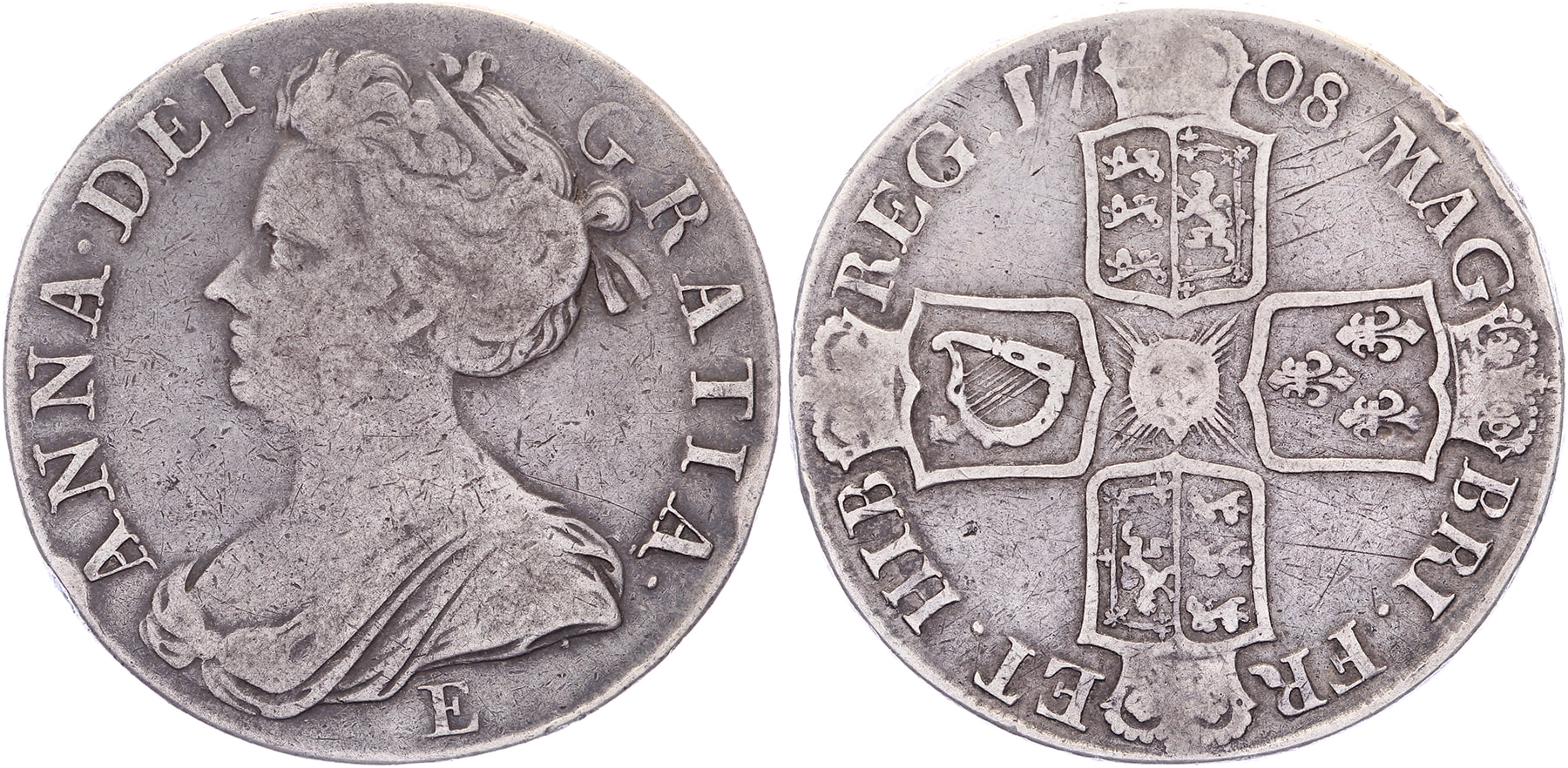 Crown 1708 Edinburgh, septimo. Dav. 1342; KM 526.1; S. 3600. Edge nicks. Fine.