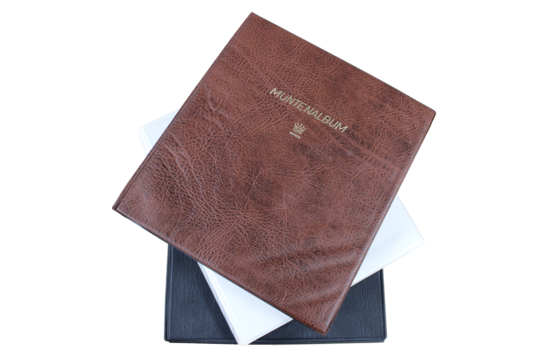 Drie albums eenvoudige wereldmunten, alsmede enige euromunten.