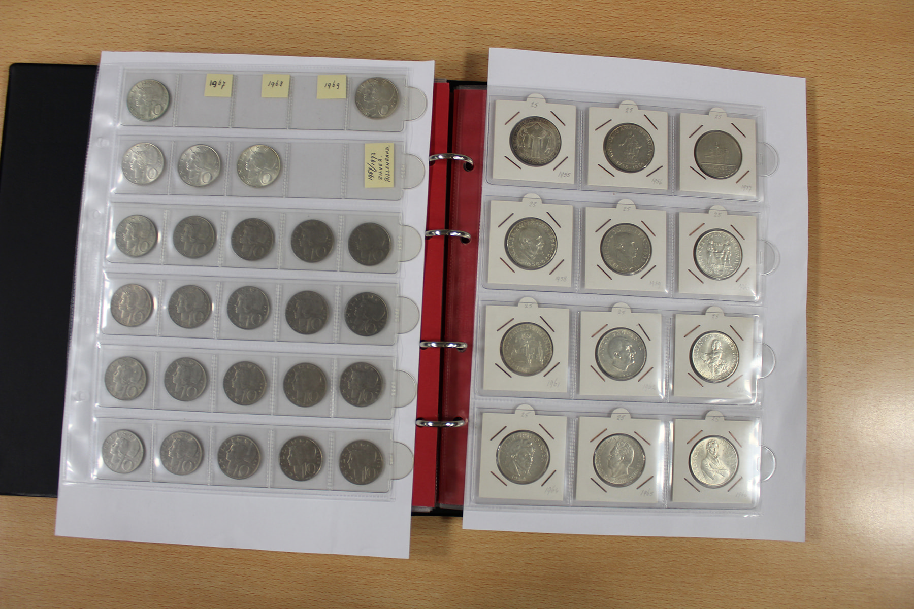 Rood Importa-album met verzameling Oostenrijk, veel zilver 5 - 100 Schilling.