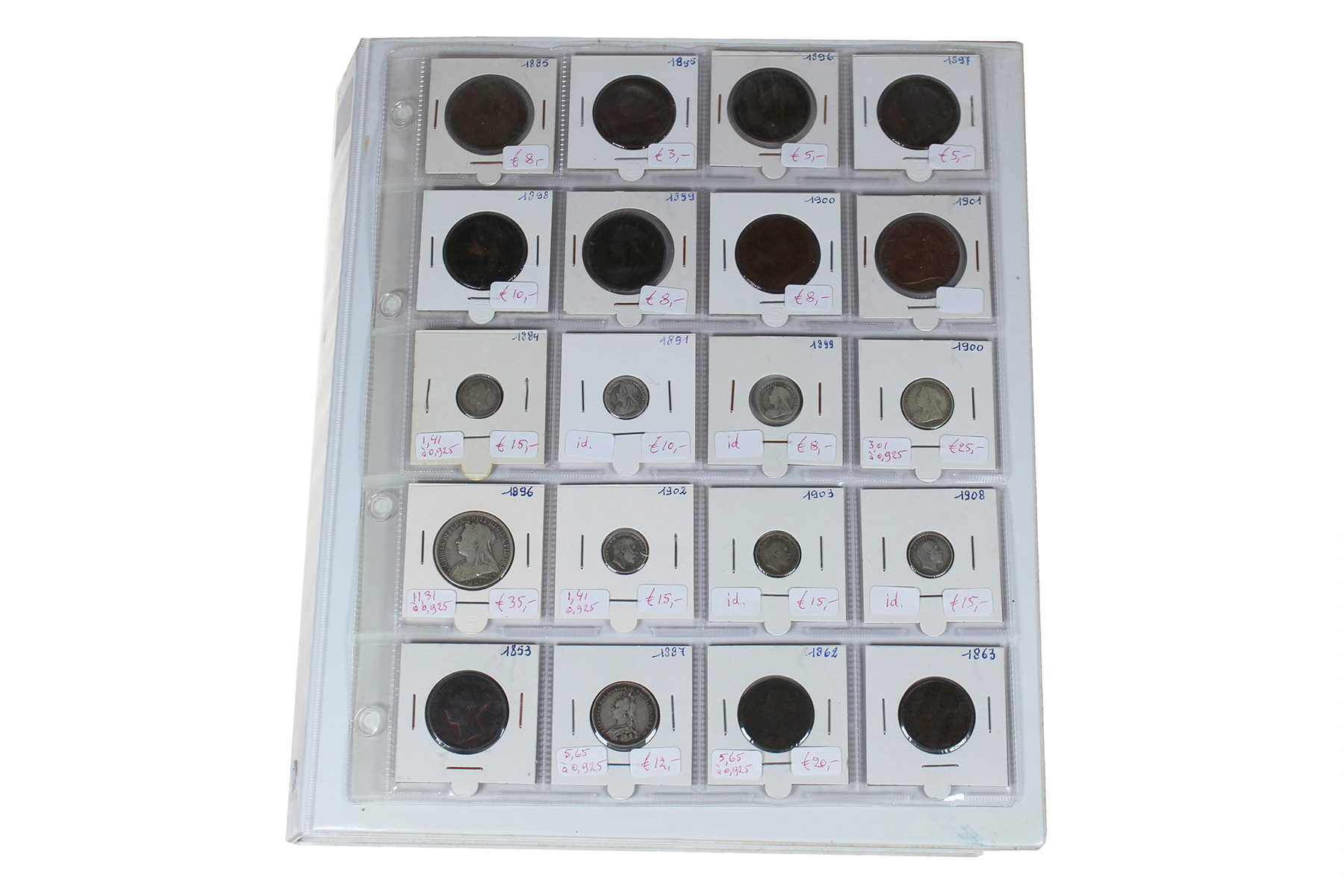 Wit album met collectie Engeland vanaf ca. 1897. Ook zilver. Meer dan 400 stuks.