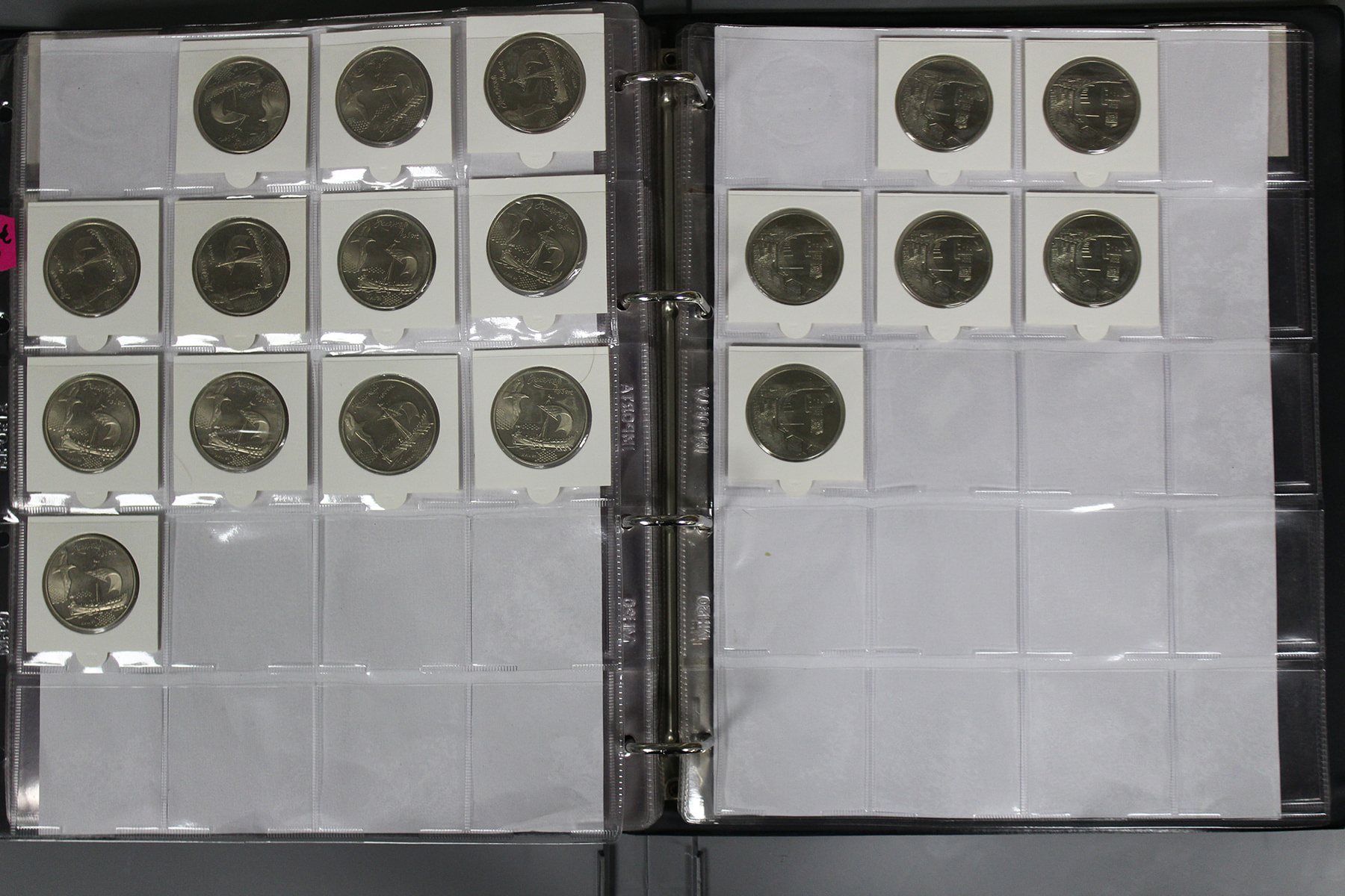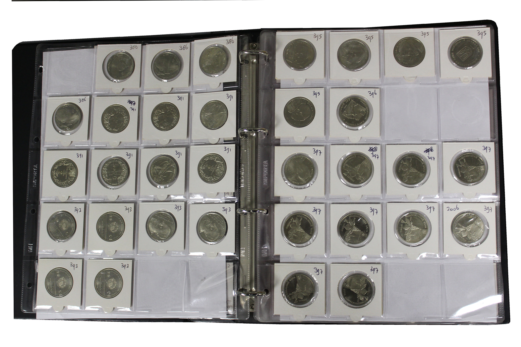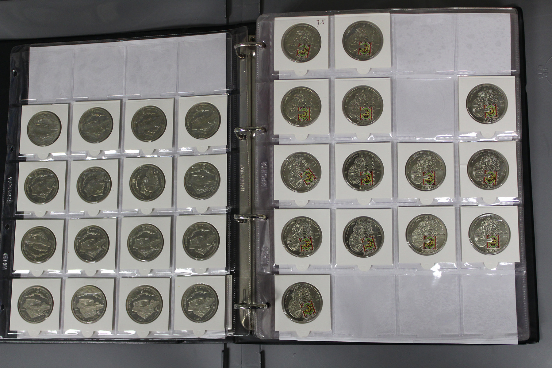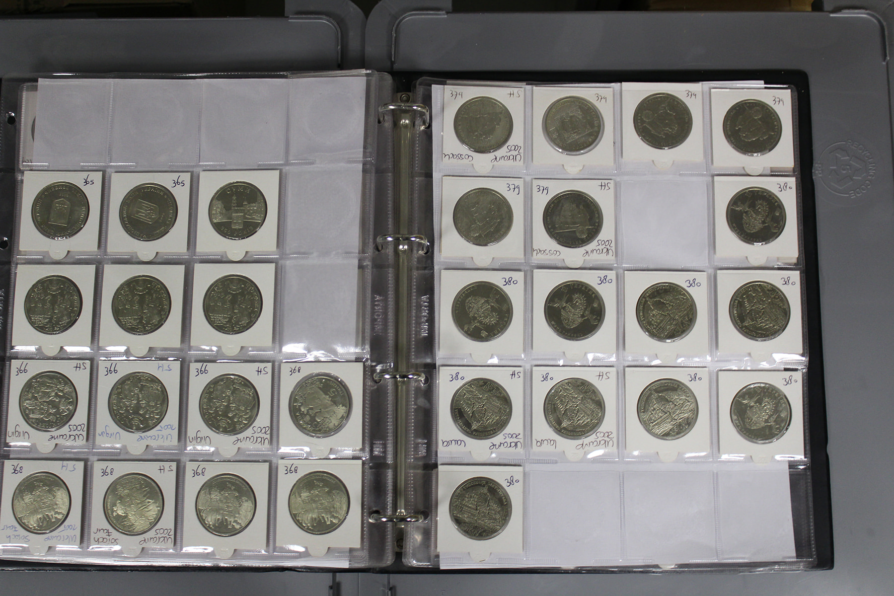 Twee albums Oekraïne. Veel herdenkingsmunten, bi-colour. Ca. 300 stuks. Ca. 7,5 kg.