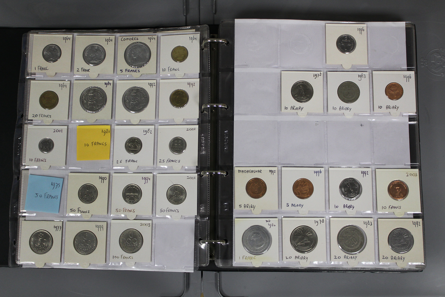 Album wereld, o.a. Frankrijk, Malagasi, Malediven, Mauritius etc. Veel exotische landen. Ruim 400 stuks. Ca. 4,5 kg.