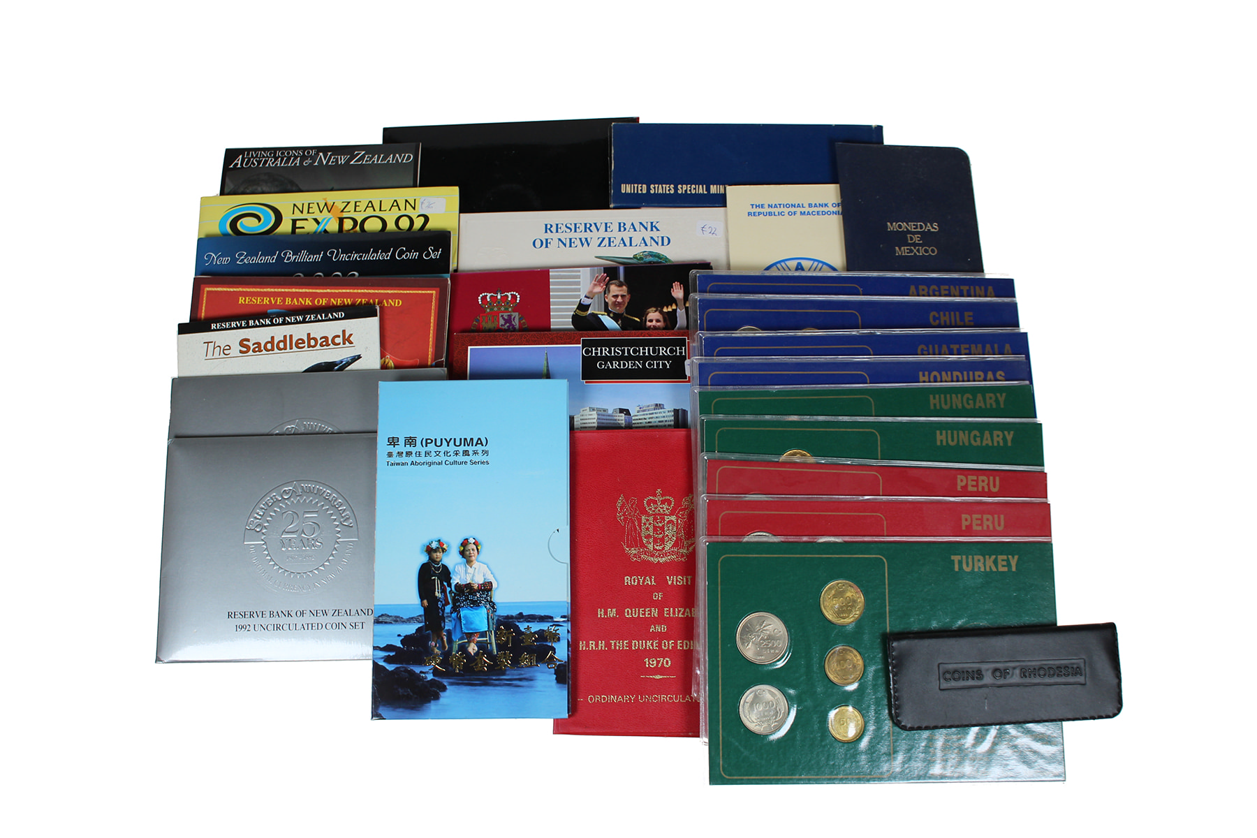Kunststof box met ruim 40 stuks muntsets UNC en proof from all over the world!