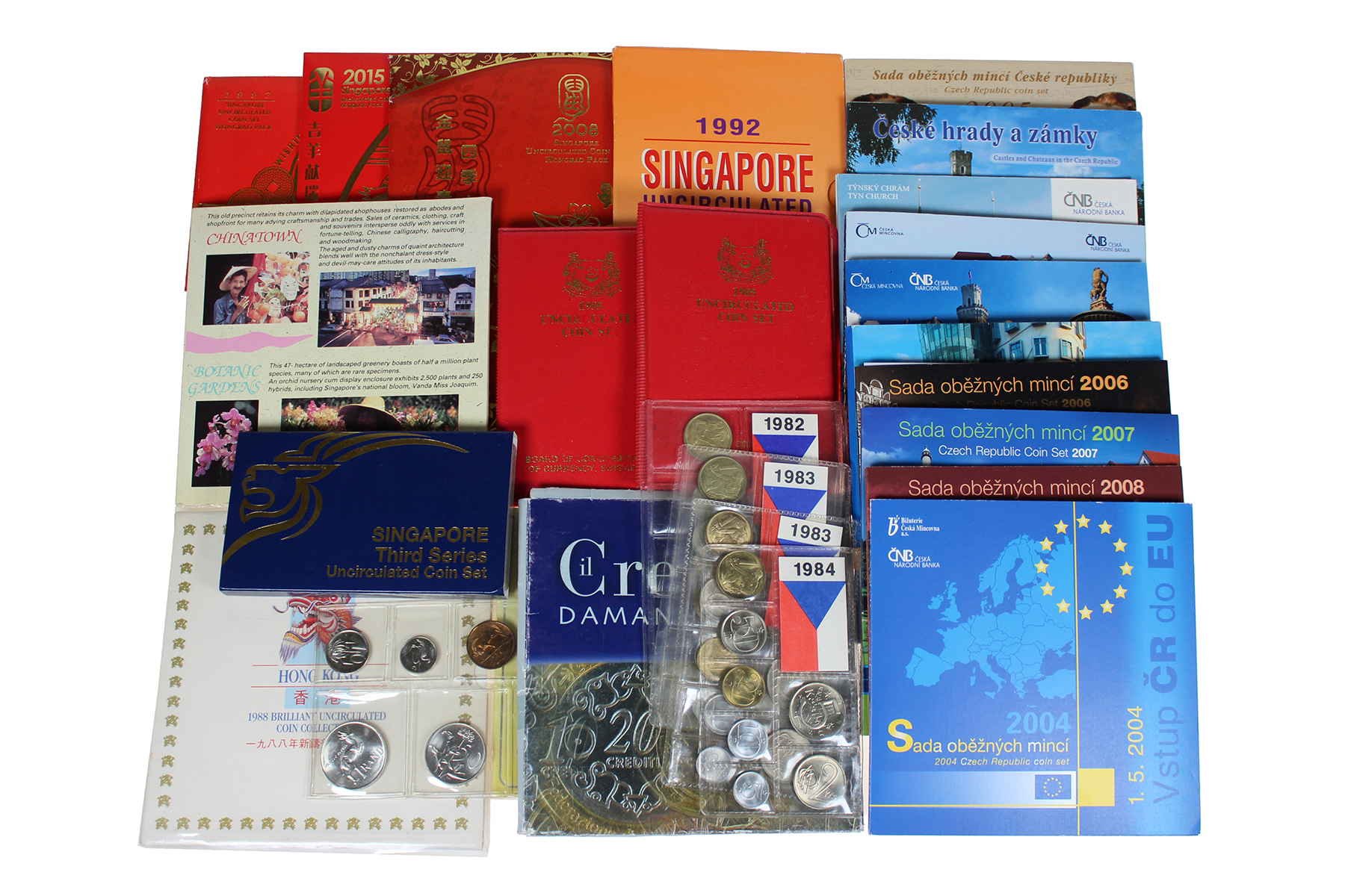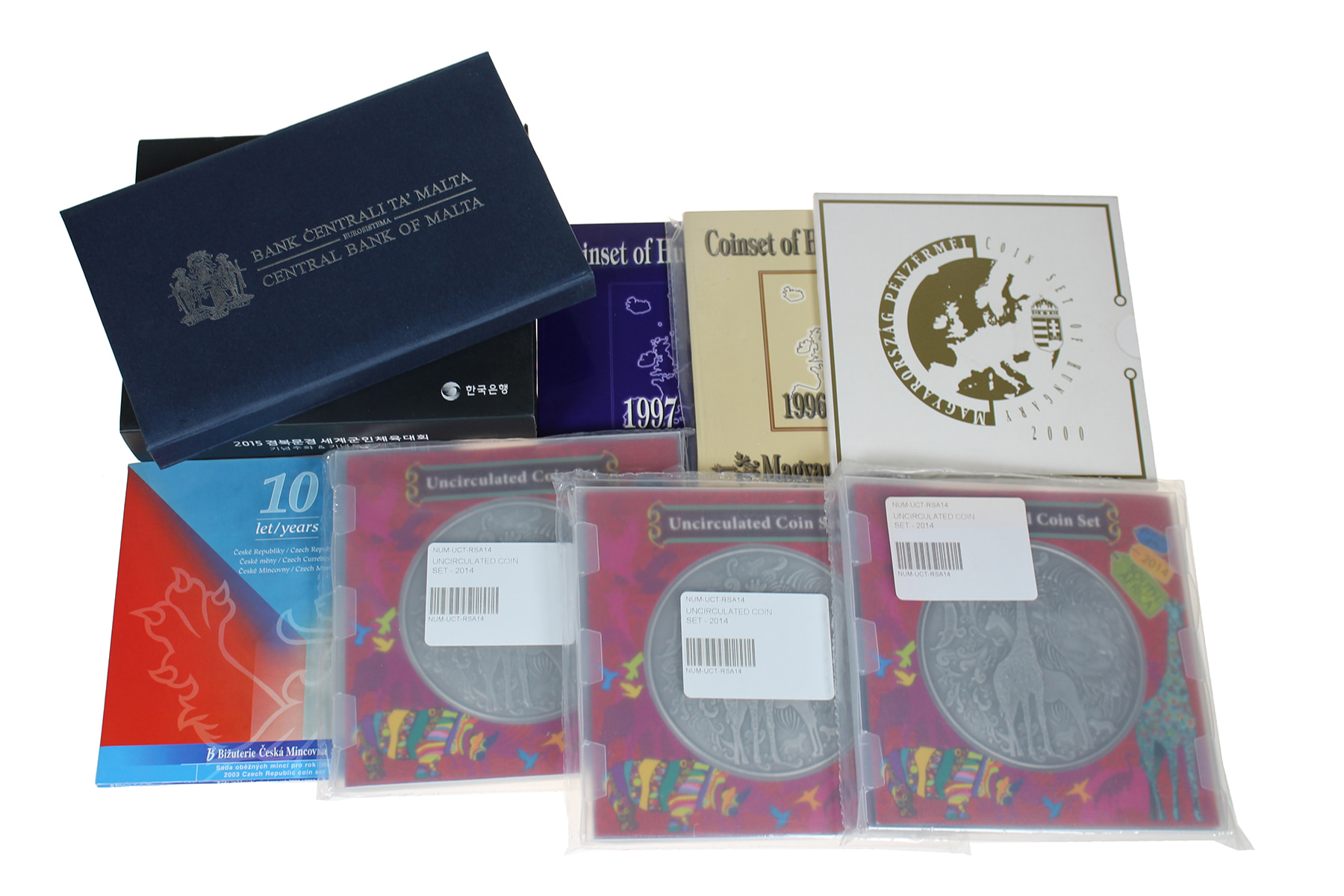 Kunststof box met ruim 35 stuks muntsets UNC en proof from all over the world!