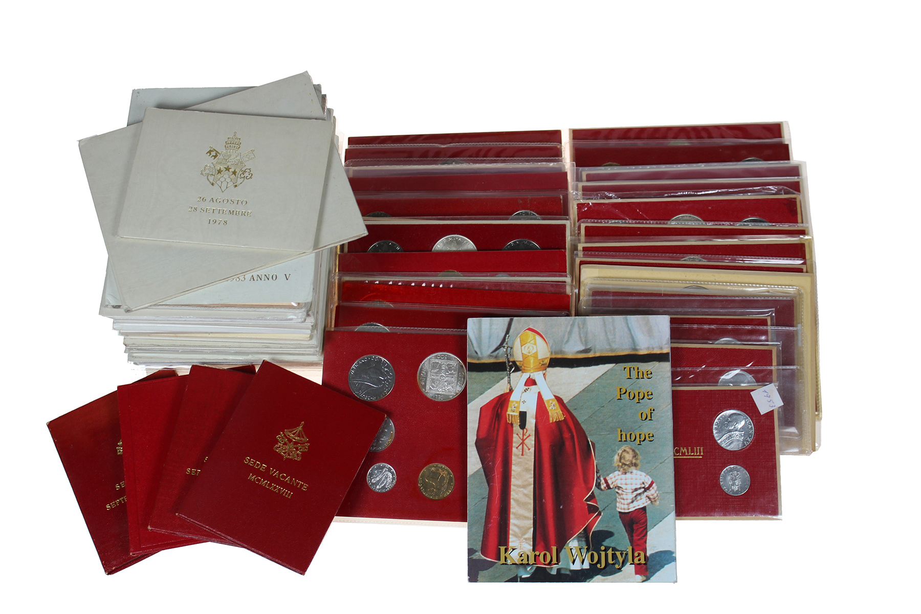 Kunststof box met ca. 50 stuks muntsets van uitsluitend Vaticaan.