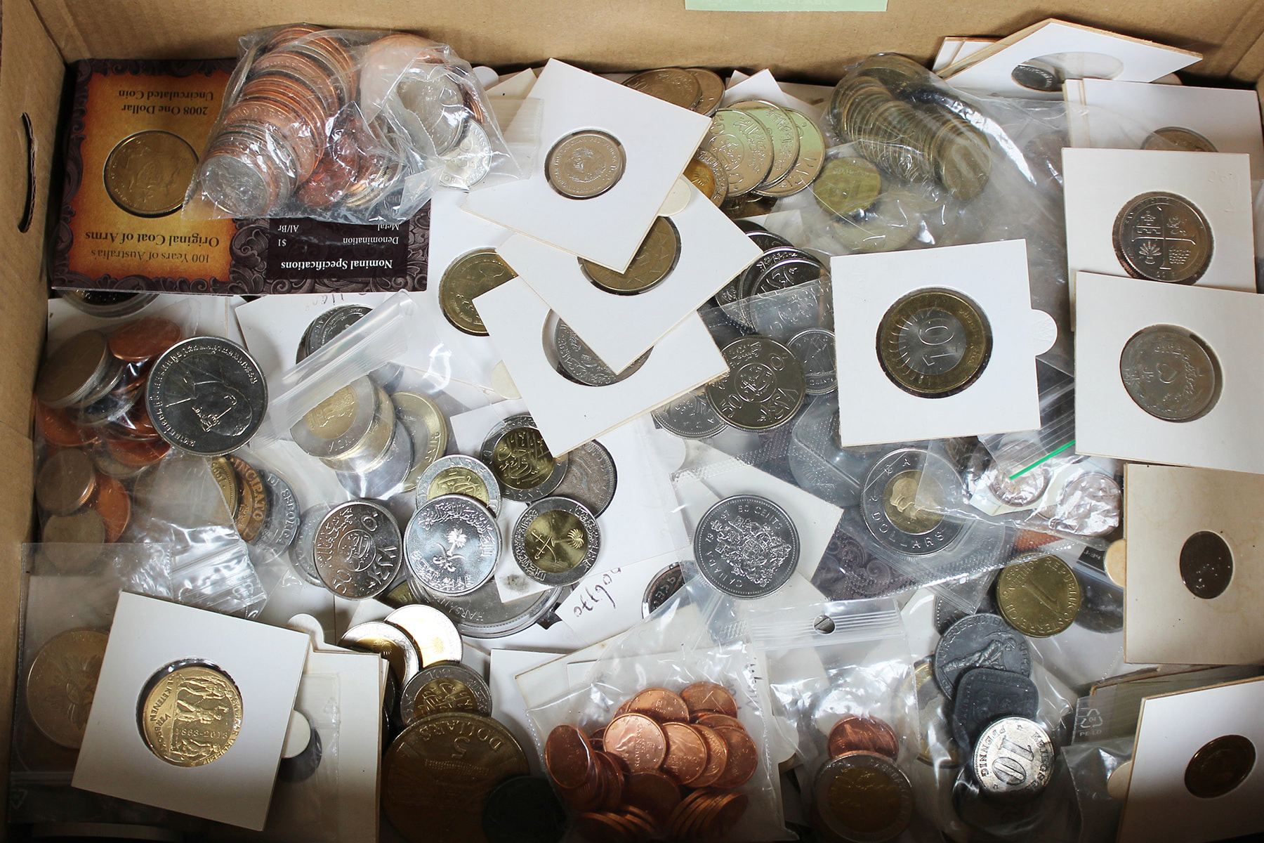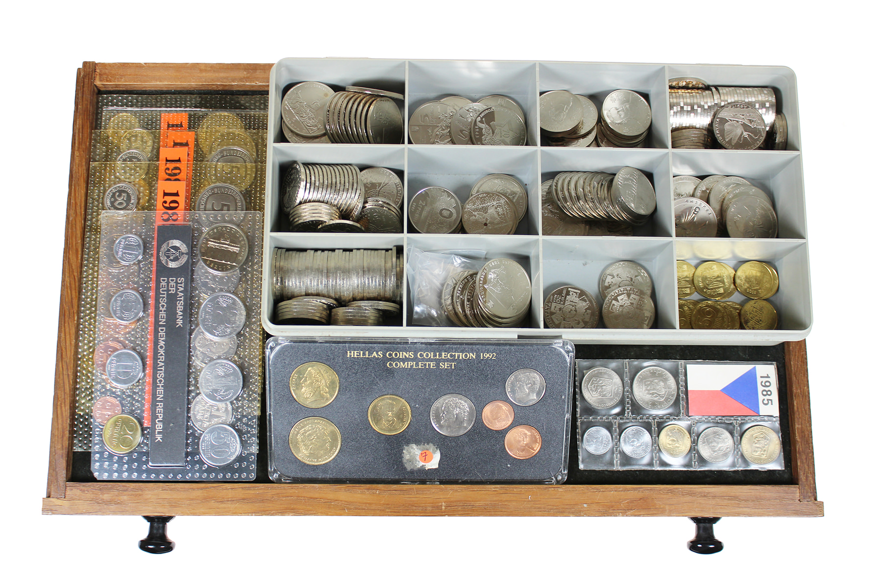 Doos onuitgezocht wereld allerlei. Veel in munthouders, setjes en capsules. Voornamelijk UNC.