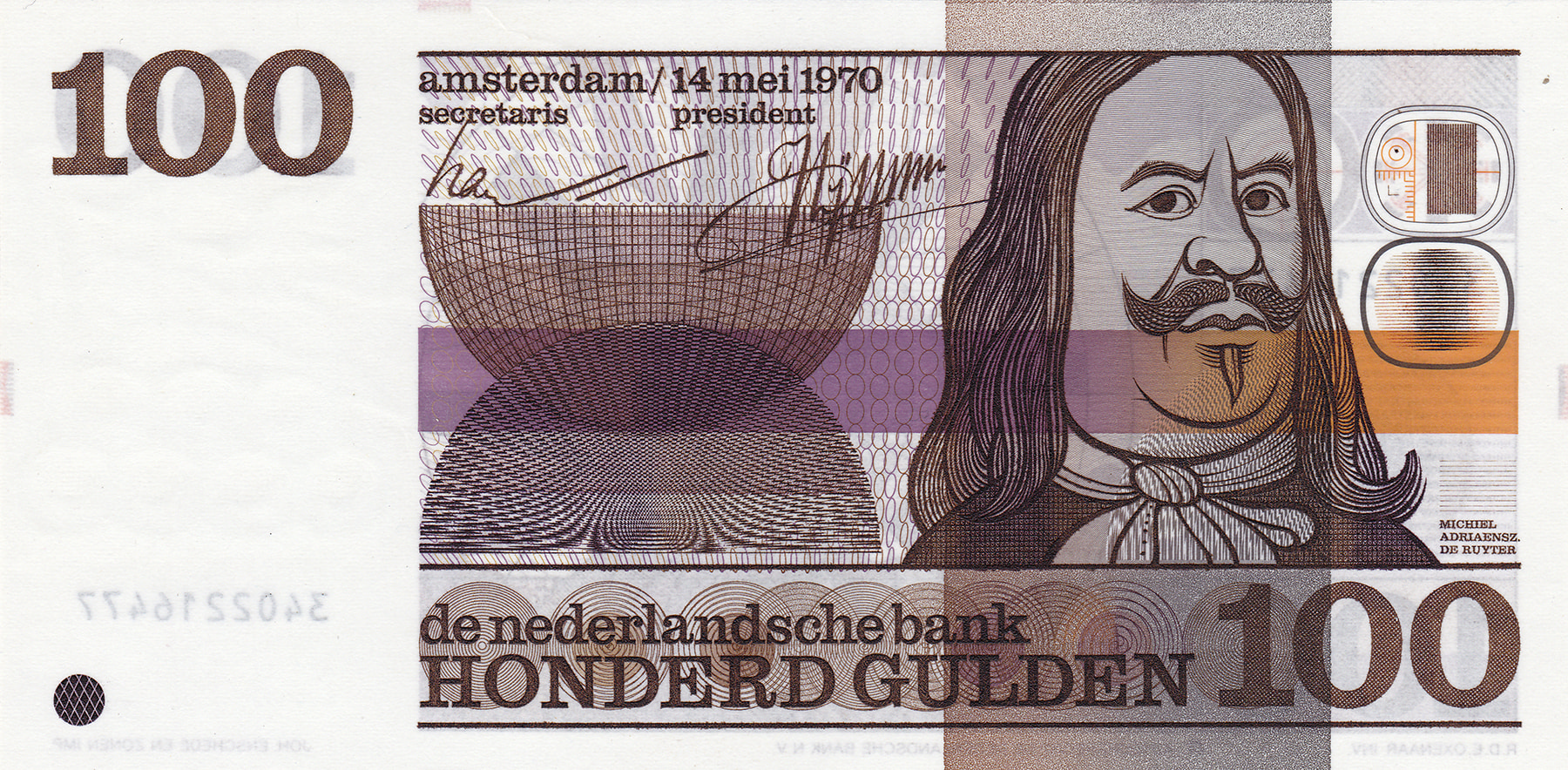 100 Gulden 1970 Michiel de Ruyter. Mev. 122-2; PL 103.c [# 3402216477]. Vrijwel UNC.