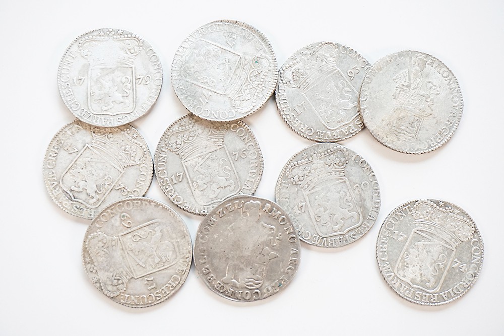Lot (10) Zilveren dukaten Zeeland 17(64), 1769, 1773, 1774, 1776, 1777, 1779, 1780, 1792 en 1793. CNM 2.49.50. Fraai / zeer fraai..