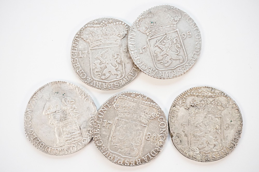 Lot (5) Zilveren dukaten Zeeland 1780, 1784, 1787, 1794 en 1795. CNM 2.49.50. Fraai / zeer fraai.
