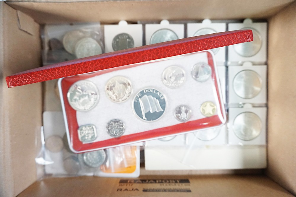Doos vnl. zilvergeld Juliana + enig divers buitenland.