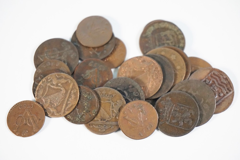 Doosje V.O.C.-duiten en halve duiten (26). Redelijke kwaliteiten.