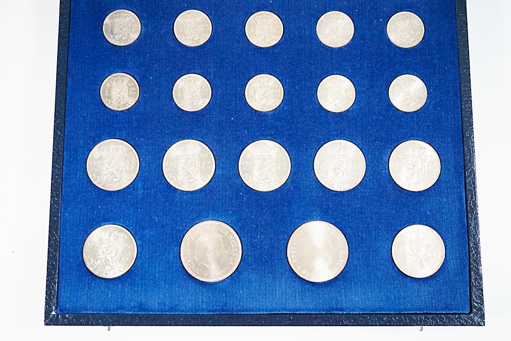 Complete Juliana-cassette met 10 zilveren guldens, 7 rijksdaalders en 2 zilveren tientjes.Let op, betere kwaliteit! Prachtig/ FDC.