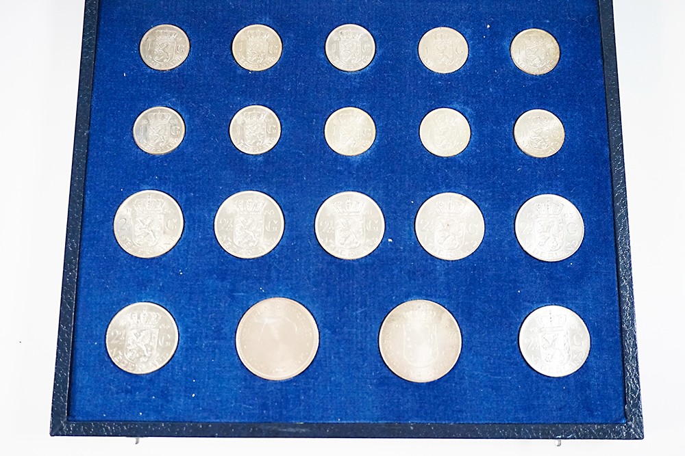 Complete Juliana-cassette met 10 zilveren guldens, 7 rijksdaalders en 2 zilveren tientjes.Let op, betere kwaliteit! Prachtig/ FDC.