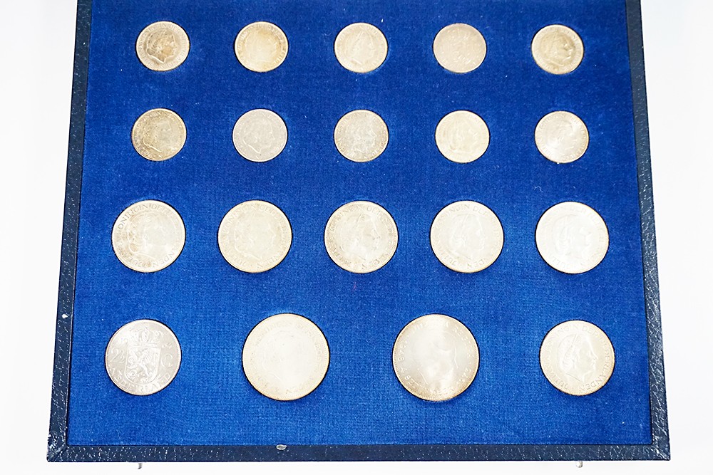 Complete Juliana-cassette met 10 zilveren guldens, 7 rijksdaalders en 2 zilveren tientjes.Let op, betere kwaliteit! Prachtig/ FDC.