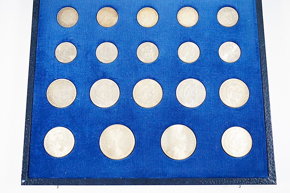 Complete Juliana-cassette met 10 zilveren guldens, 7 rijksdaalders en 2 zilveren tientjes.Let op, betere kwaliteit! Prachtig/ FDC.