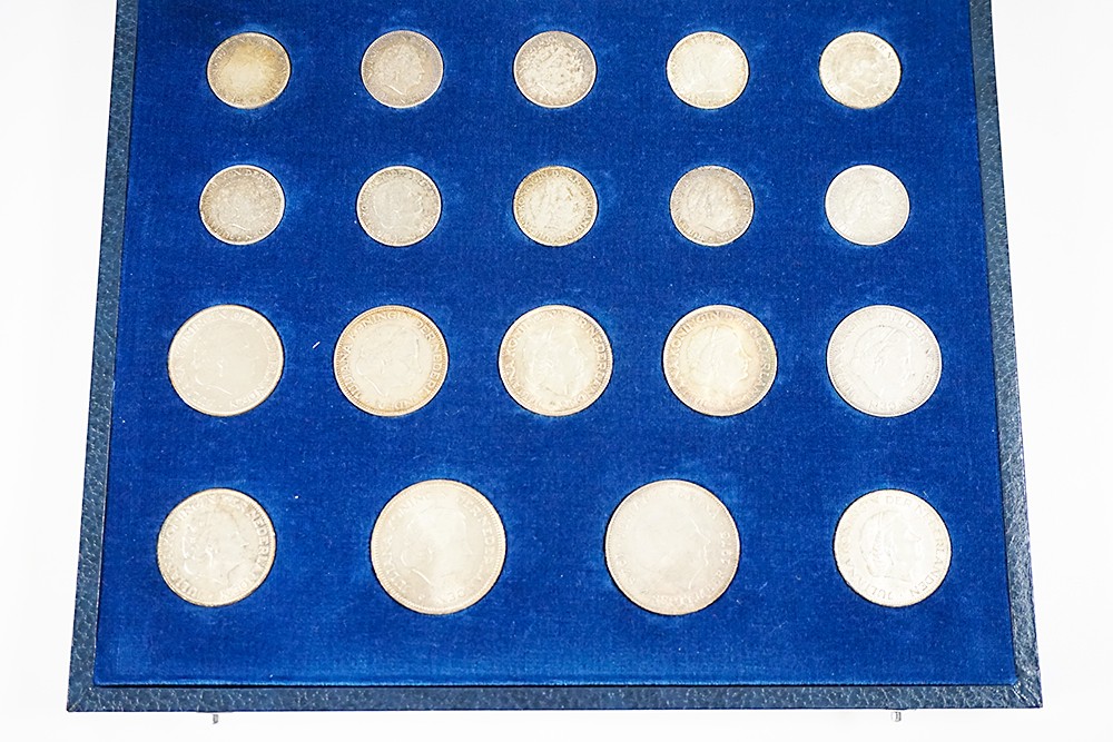 Complete Juliana-cassette met 10 zilveren guldens, 7 rijksdaalders en 2 zilveren tientjes.Let op, betere kwaliteit! Prachtig/ FDC.