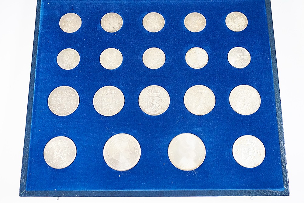 Complete Juliana-cassette met 10 zilveren guldens, 7 rijksdaalders en 2 zilveren tientjes.Let op, betere kwaliteit! Prachtig/ FDC.
