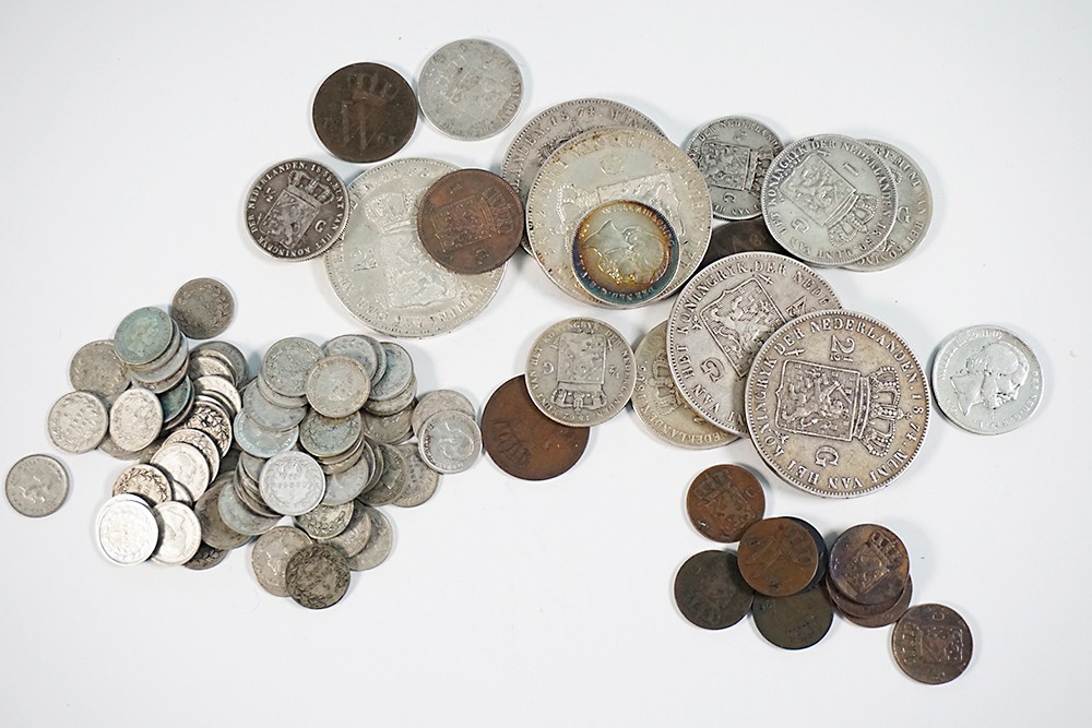 Doosje Willem III: 5 x rijksdaalder; 3 x gulden; 6 x ½ gulden; 80 x stuiver; 4 x cent; 9 x ½ cent. Voornamelijk mindere kwaliteiten.