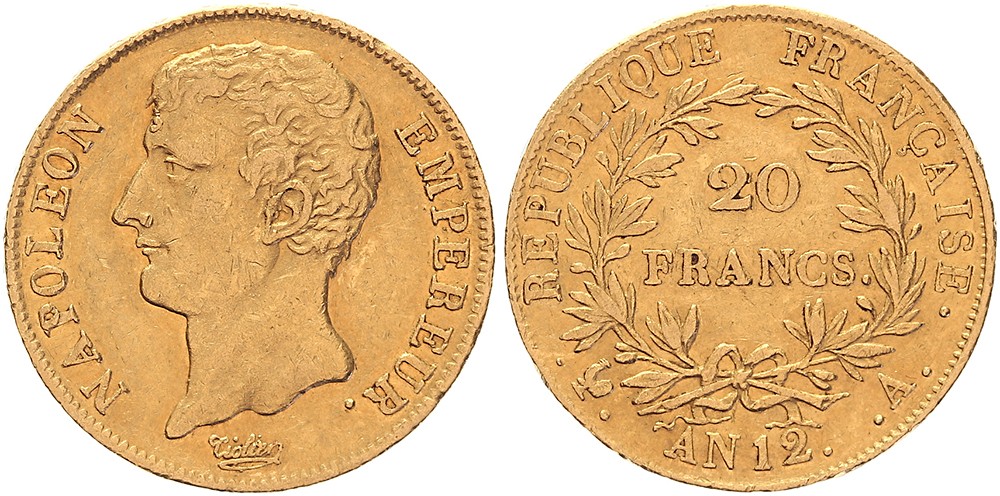 20 Francs An 12A (Paris). Fr. 487; Gad. 1021; KM 661. TTB (VF).