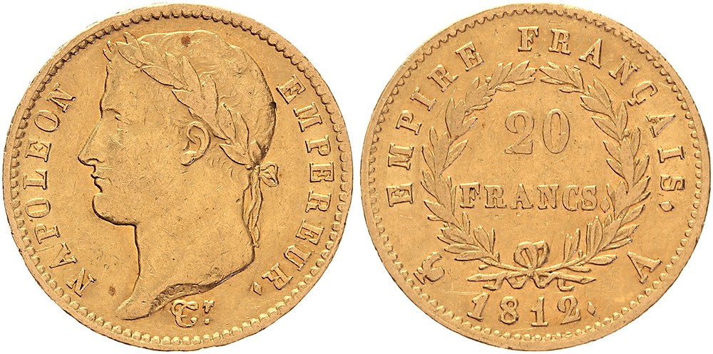 20 Francs 1812A (Paris). Fr. 511; Gad. 1025; KM 695.1. TTB (VF).