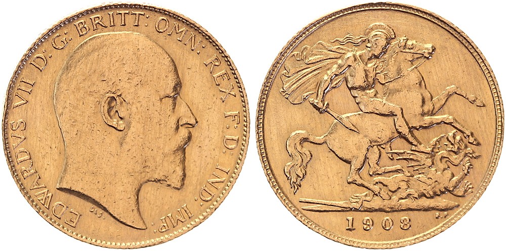 ½ Sovereign 1908. Fr. 401; KM 804. EF.