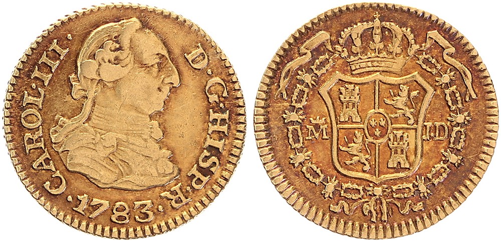 ½ Escudo 1783, Madrid – JD. Fr. 290; KM 415.1 [1,72 gr]. VF.