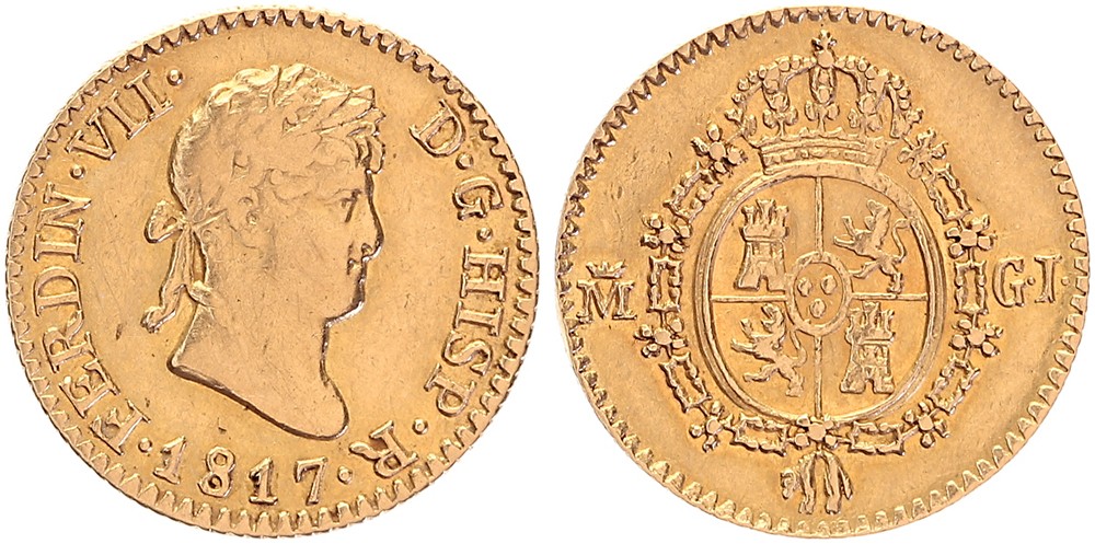 ½ Escudo 1817, Madrid – GJ. Fr. 318; KM 492. VF.